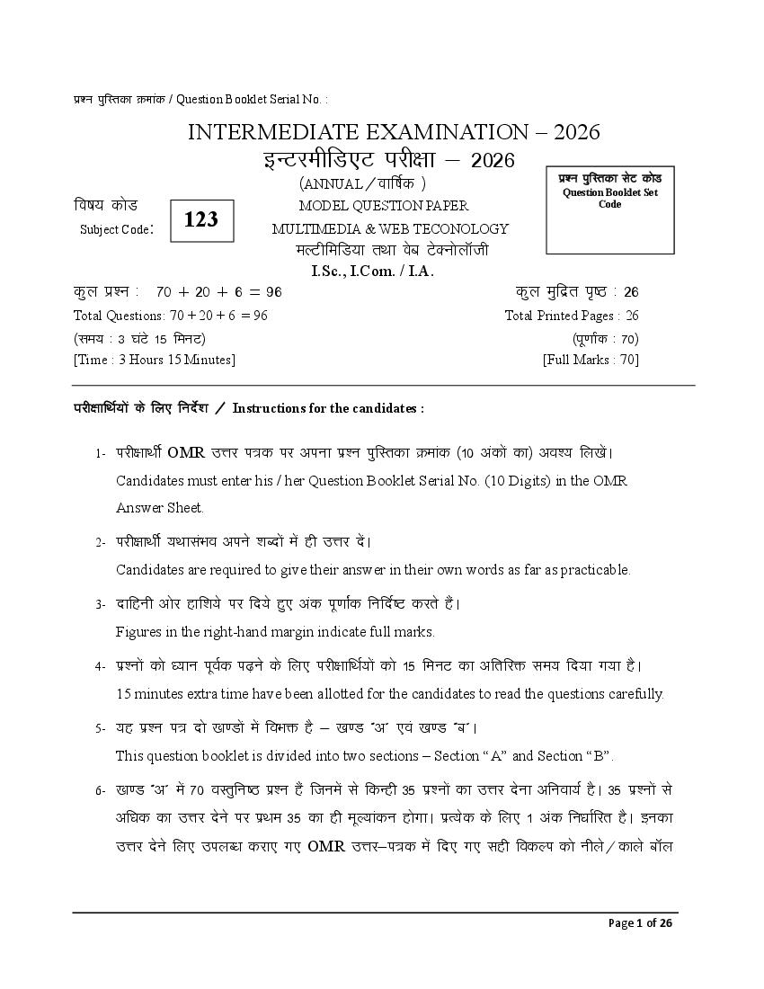 Bihar Board Class 12th Model Paper 2026 Mutimedia & Web Technology View Download