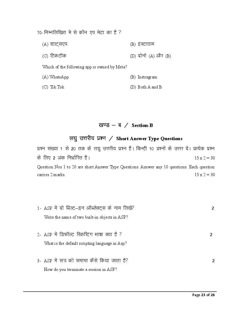 आपको बात दे की बीएसईबी कक्षा 12 मल्टीमीडिया एवं वेब टेक्नॉलोजी मॉडल पेपर (BSEB Class 12 Multimedia & Web Technology Model Paper) वह सैम्पल पेपर है जिसमे पाठ्यक्रम एवं लैटस्ट स्कीम के अनुसार प्रश्न बनाए जाते है। इस बार कक्षा 12 के विद्यार्थियों के लिए मल्टीमीडिया एवं वेब टेक्नॉलोजी का बिहार बोर्ड मॉडल पेपर यह रहा।