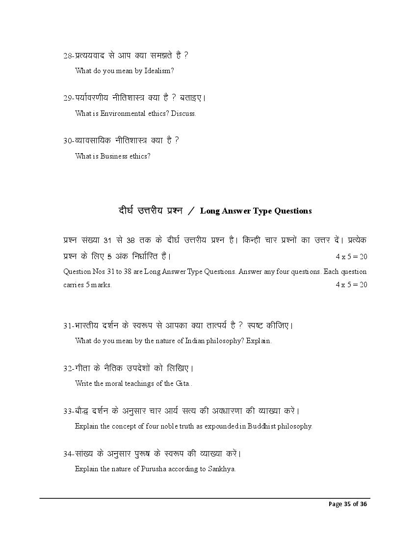 बिहार बोर्ड 12वीं दर्शनशास्त्र मॉडल पेपर 2026