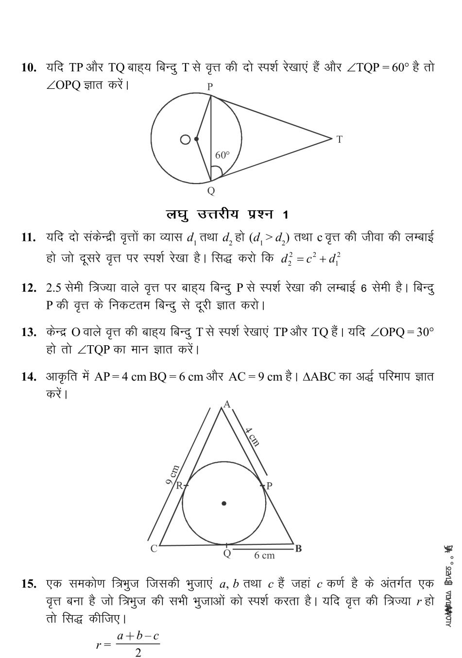कक्षा 10 गणित वृत्त नोट्स
