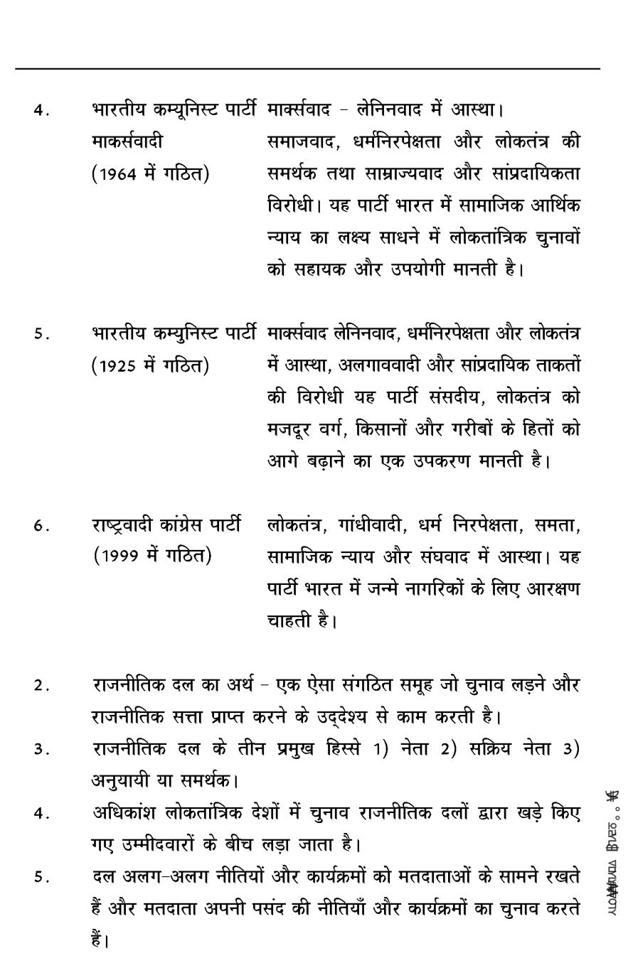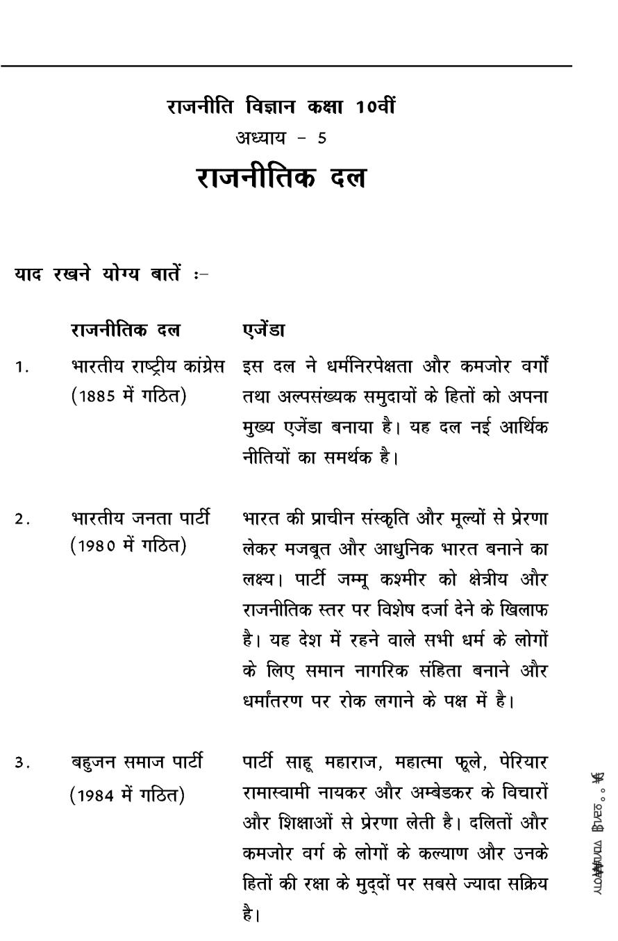 कक्षा 10 सामाजिक विज्ञान के नोट्स - राजनीति विज्ञान - राजनीतिक दल View Download