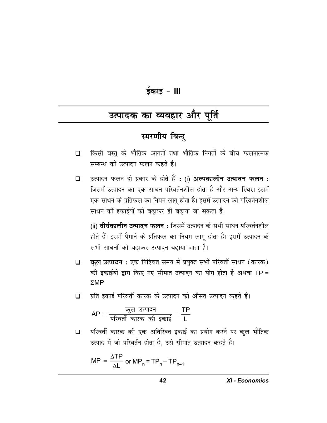 कक्षा 11 अर्थशास्त्र उत्पाद का व्यवहार एवं पूर्ति नोट्स PDF