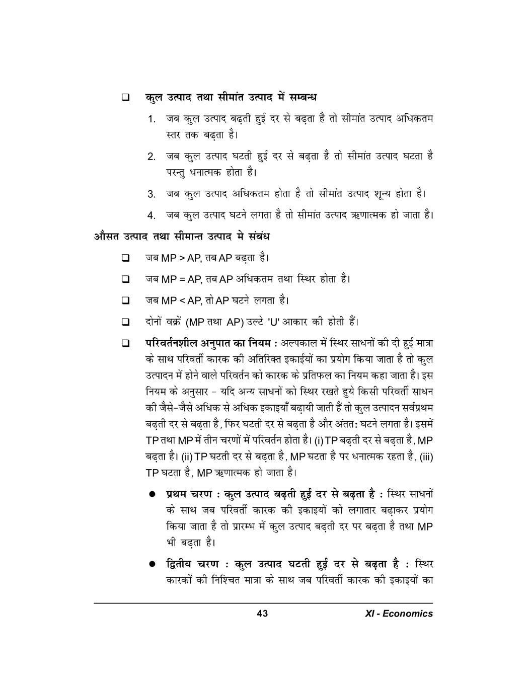 कक्षा 11 अर्थशास्त्र उत्पाद का व्यवहार एवं पूर्ति नोट्स