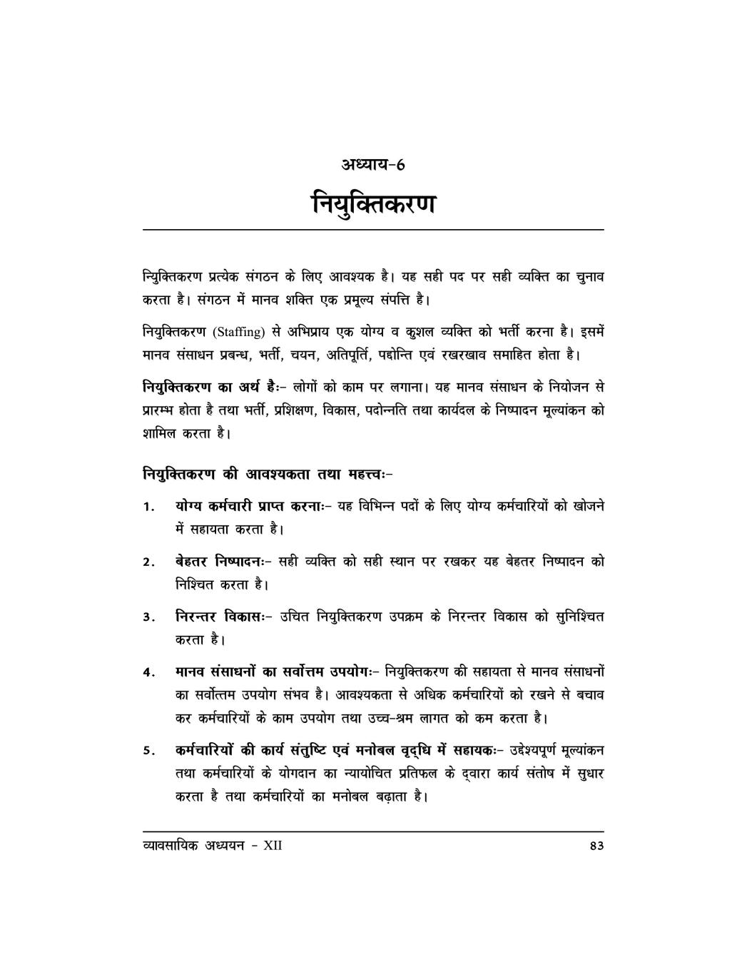 कक्षा 12 व्यवसाय अध्ययन नियुक्तिकरण नोट्स PDF