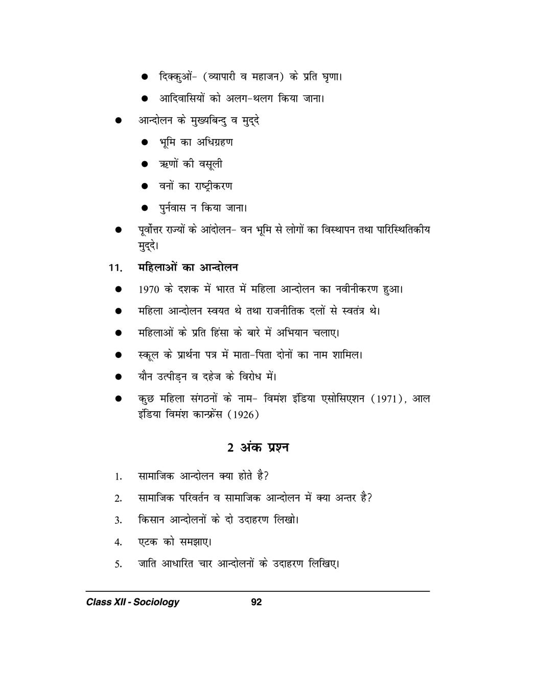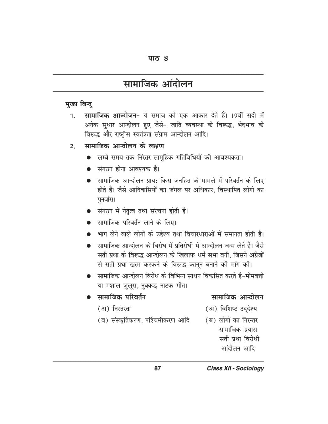 कक्षा 12 समाज शास्त्र के नोट्स - सामाजिक आंदोलन View Download