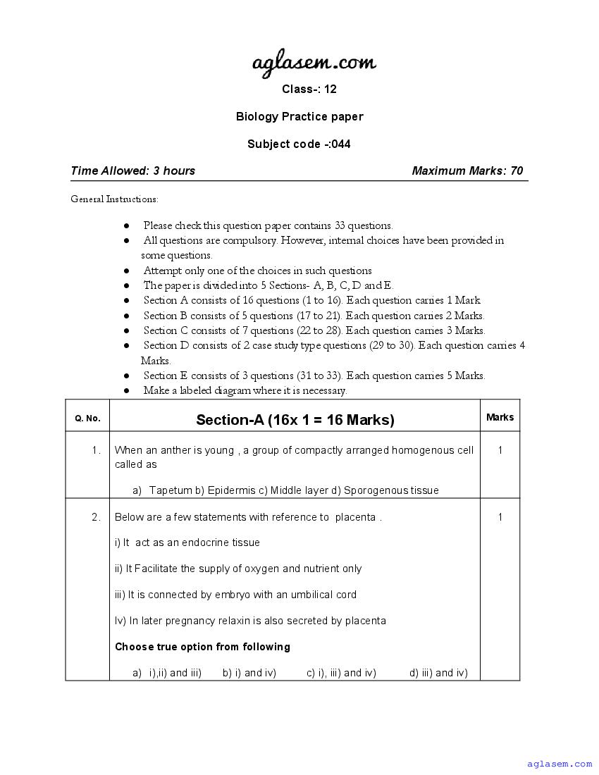 | अध्ययन सामग्री | कक्षा 12 जीवविज्ञान के लिए सैंपल पेपर |