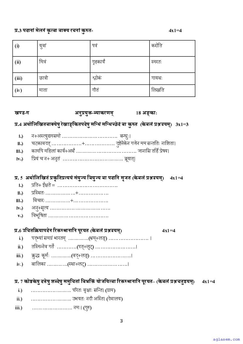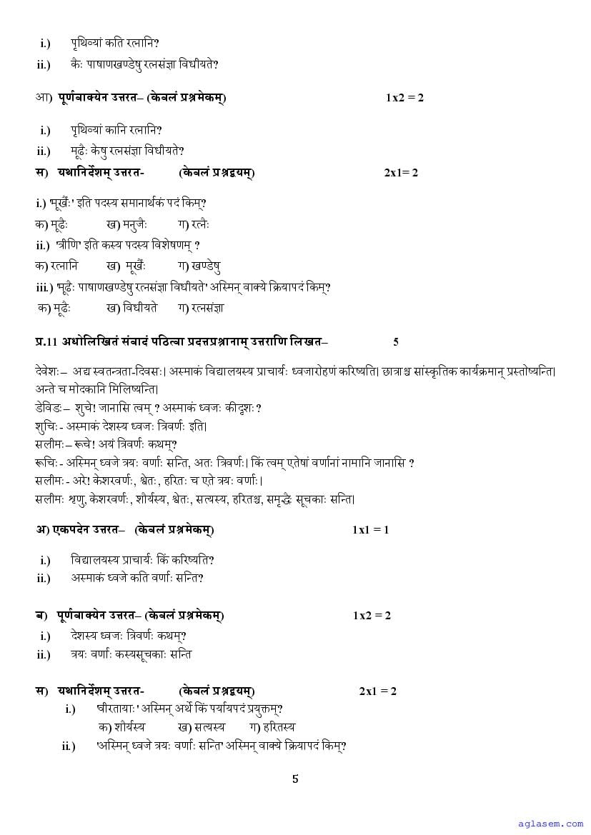 - संस्कृत (Sanskrit) का सैंपल पेपर