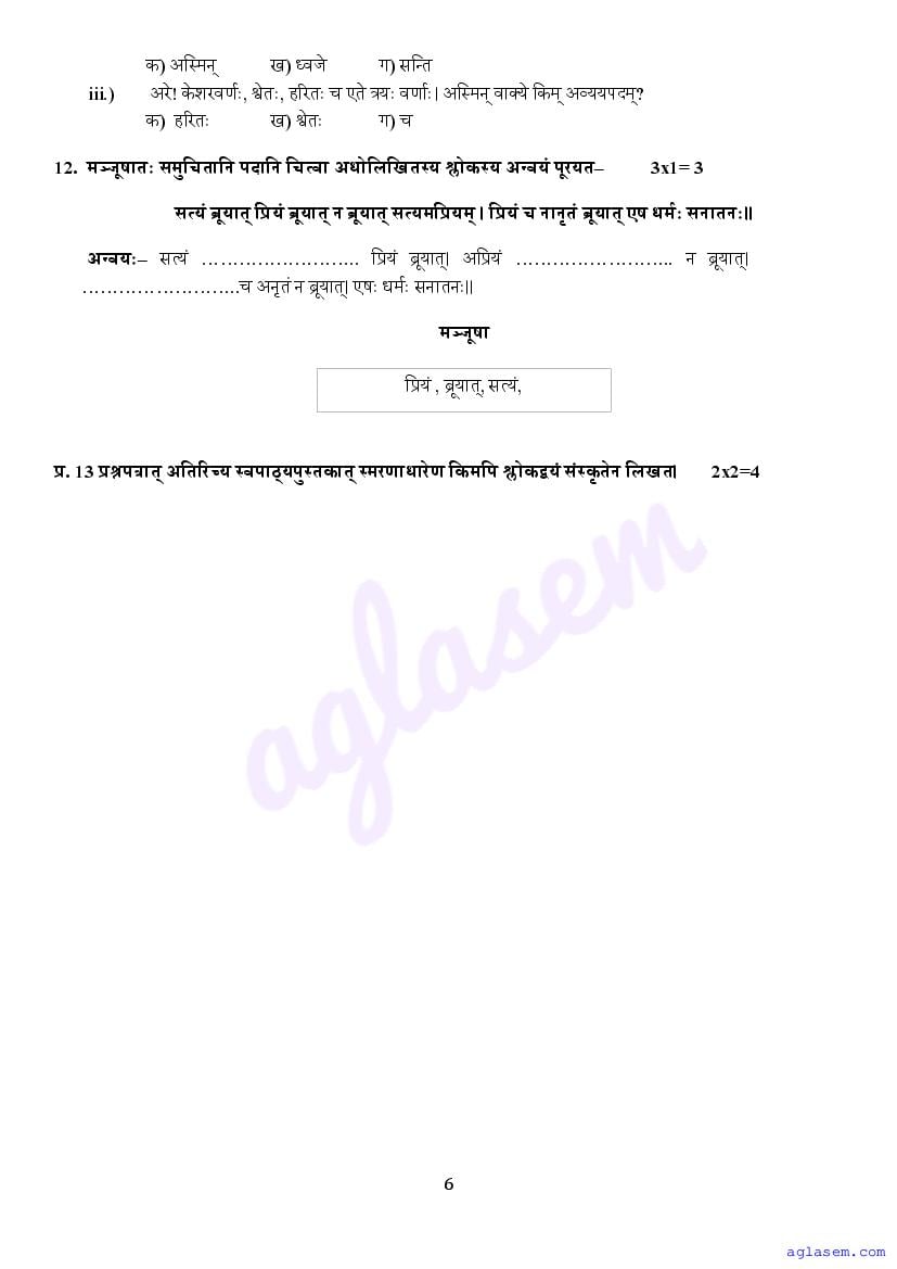 कक्षा 7 संस्कृत सैंपल पेपर download link – PDF Download करने के लिए यह क्लिक करे