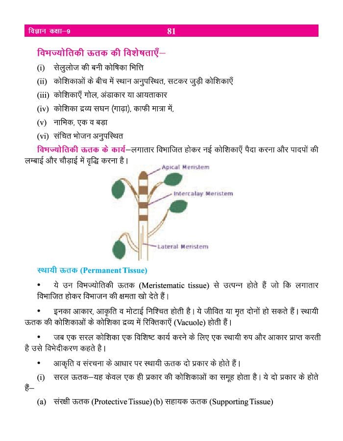 | अध्ययन सामग्री | कक्षा 9वीं के नोट्स विज्ञान विषय के उत्तक अध्याय के लिए |