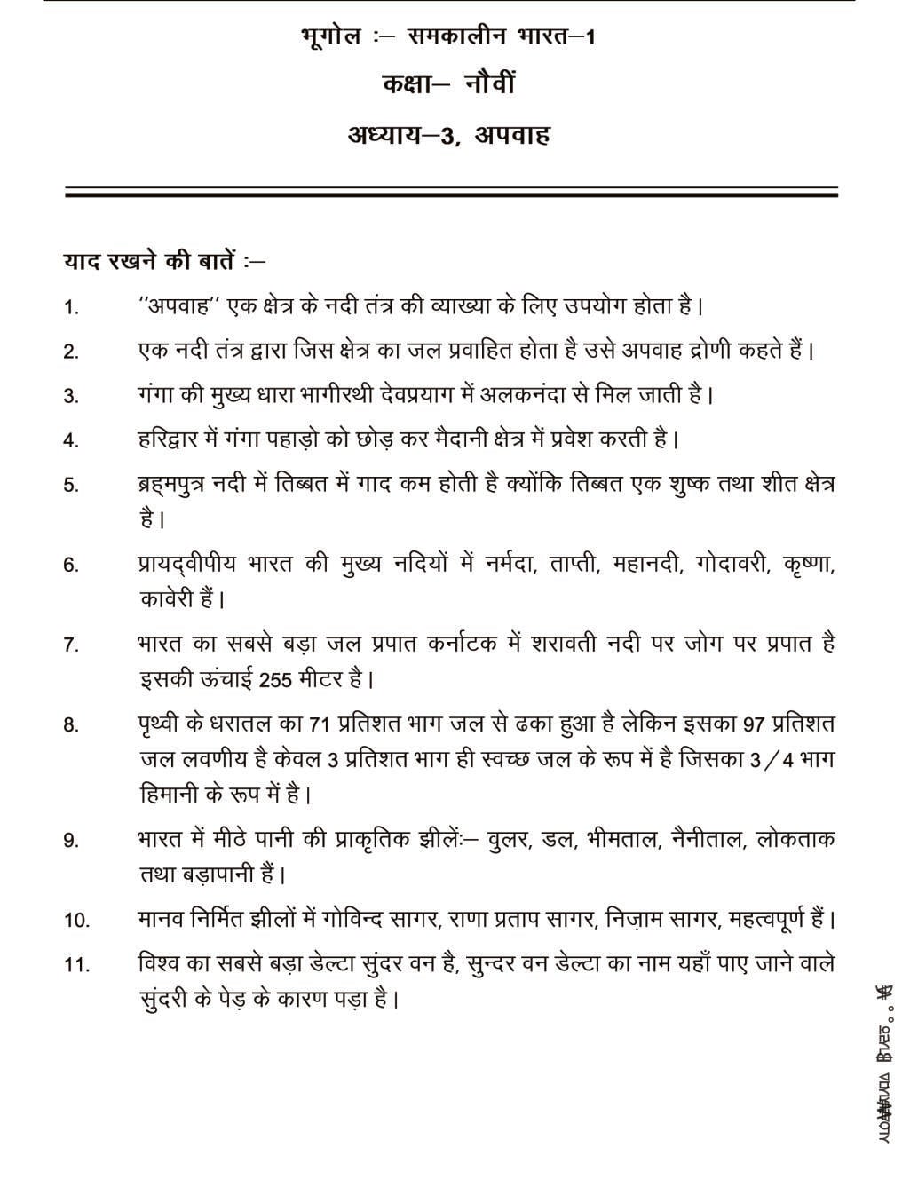 कक्षा 9 सामाजिक विज्ञान अपवाह नोट्स PDF