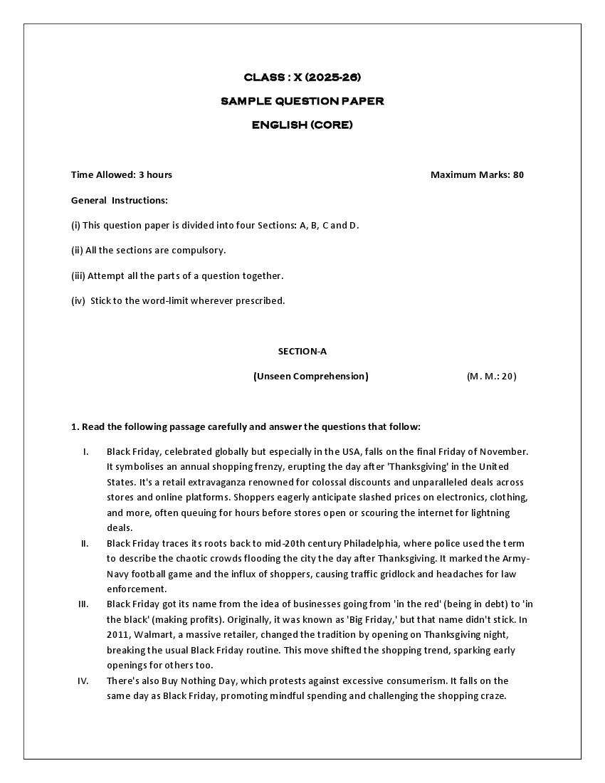 हरियाणा बोर्ड 10वीं अंग्रेज़ी मॉडल पेपर 2026