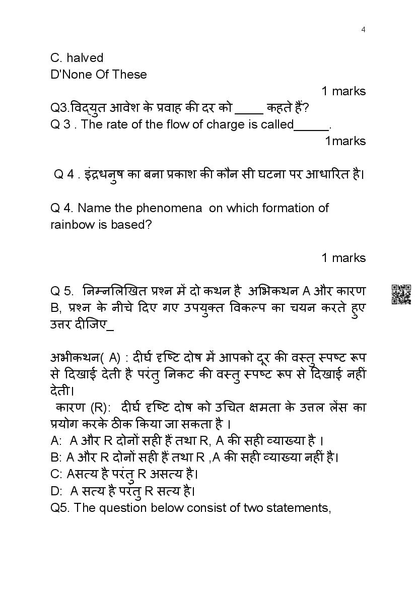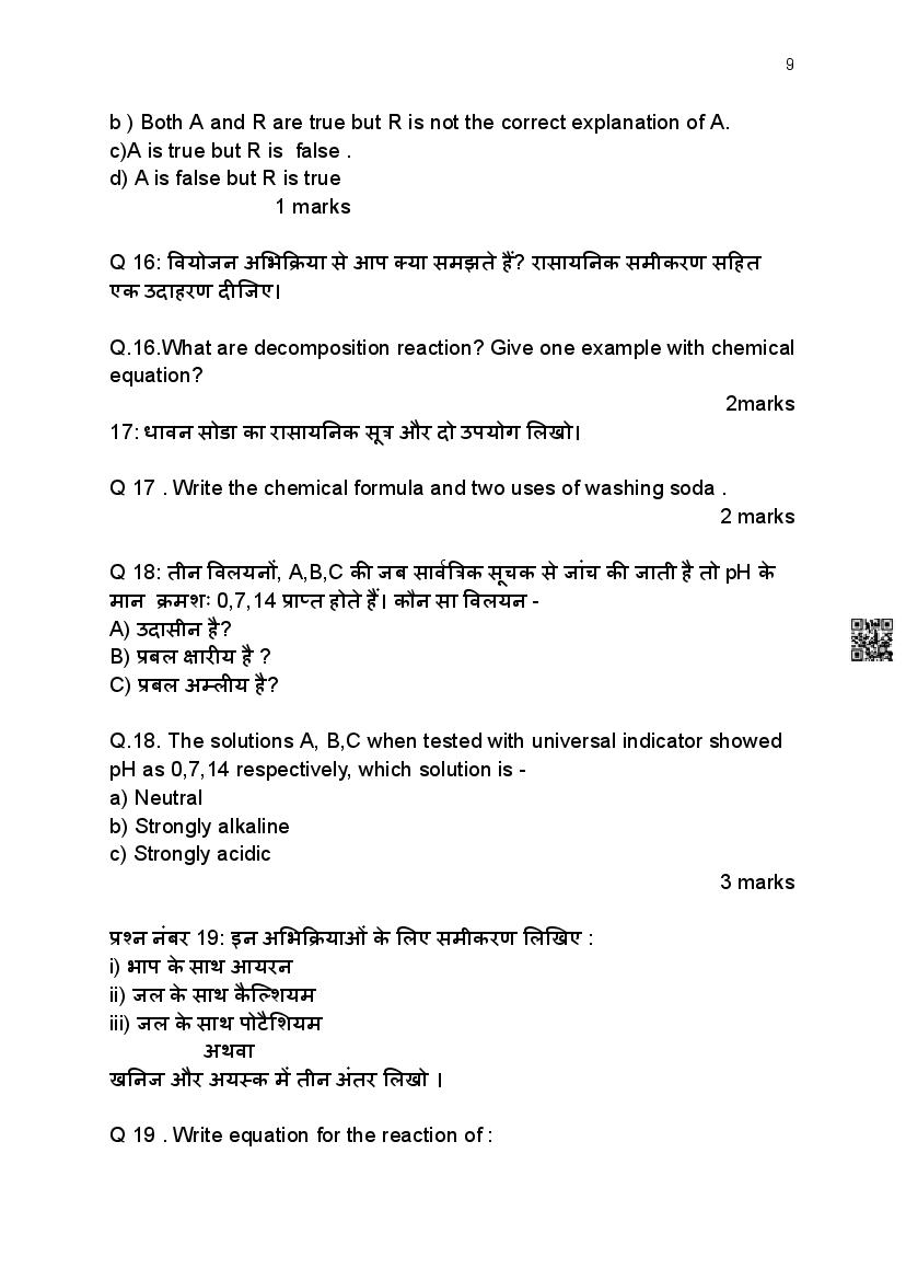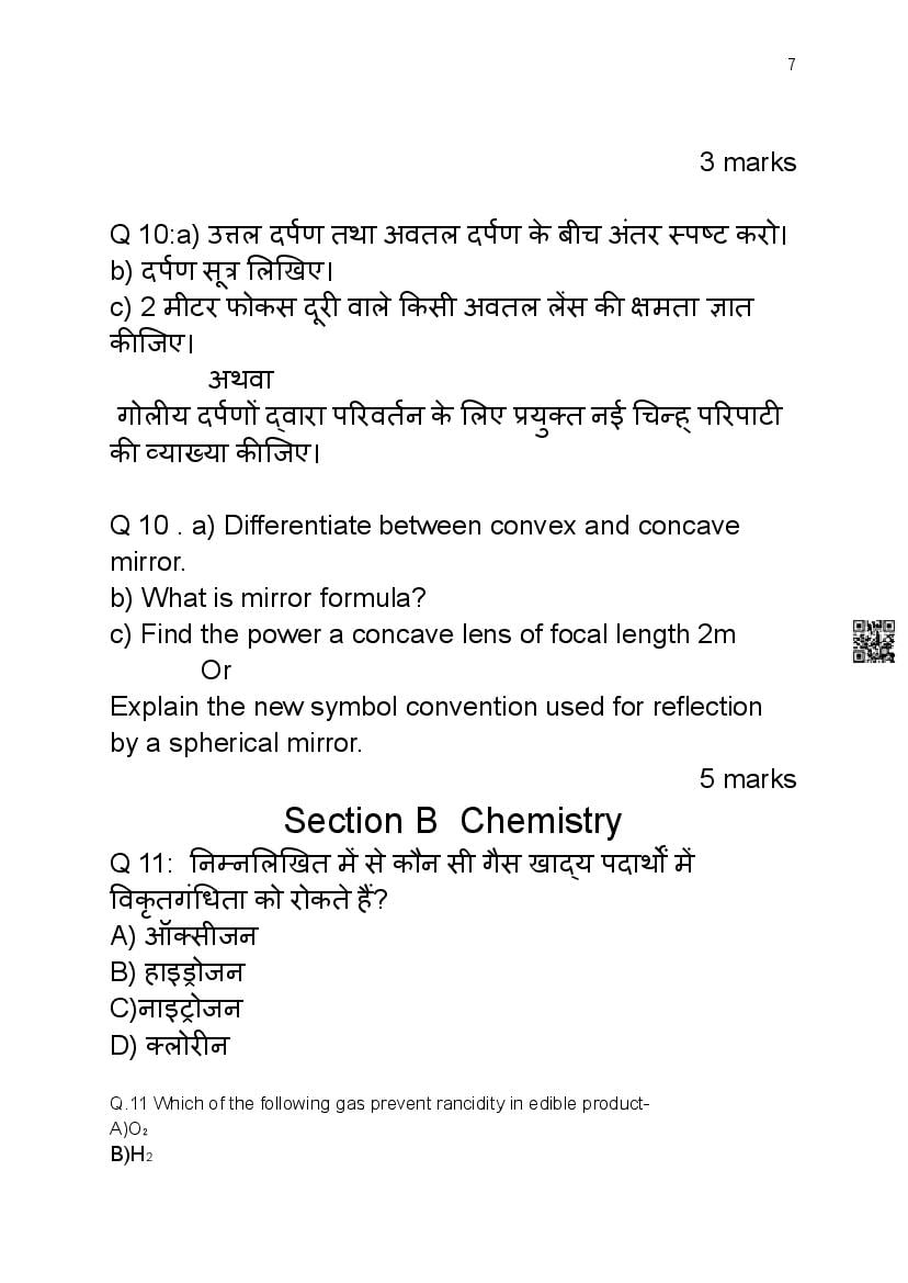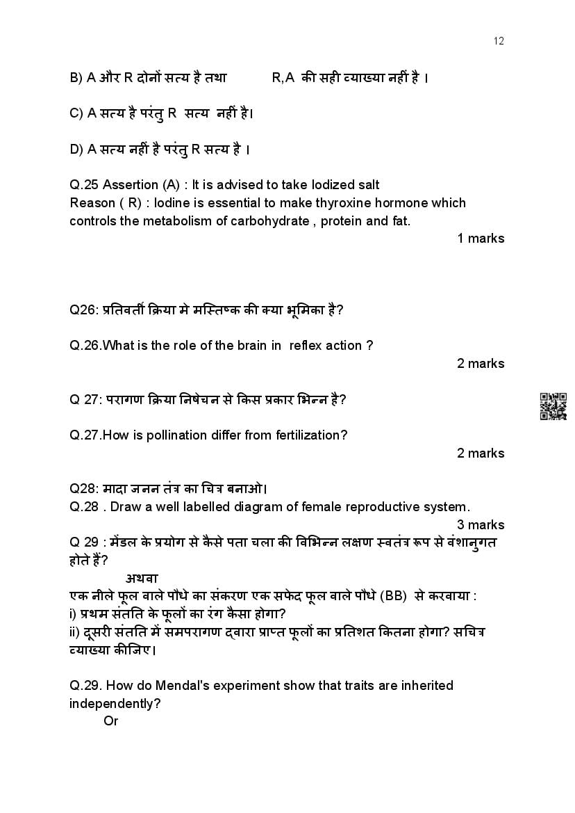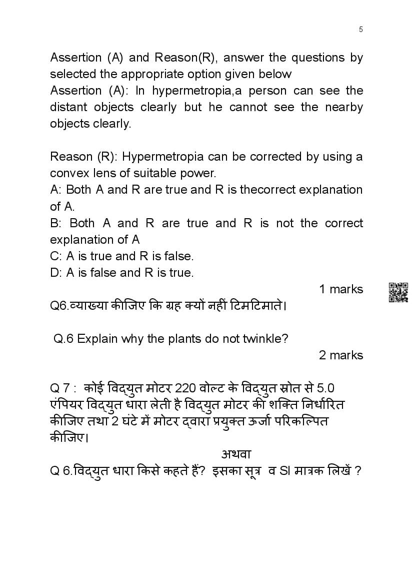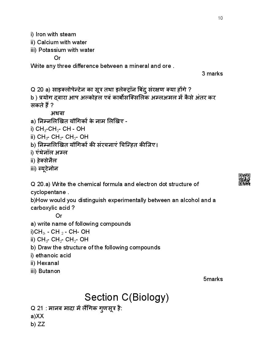 हरियाणा बोर्ड 10वीं विज्ञान मॉडल पेपर 2025