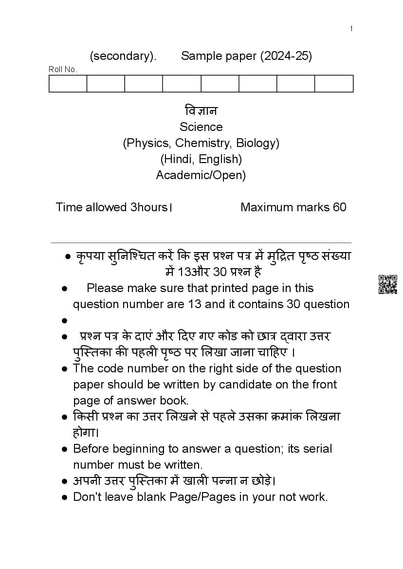 हरियाणा बोर्ड 10वीं विज्ञान मॉडल पेपर 2025 – जरूरी बातें