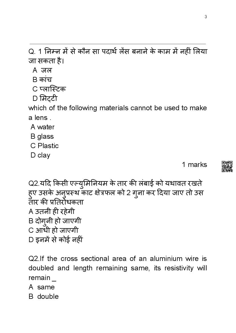 हरियाणा बोर्ड 10वीं विज्ञान मॉडल पेपर 2025 PDF