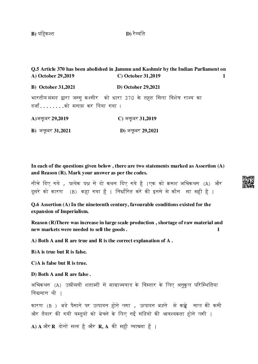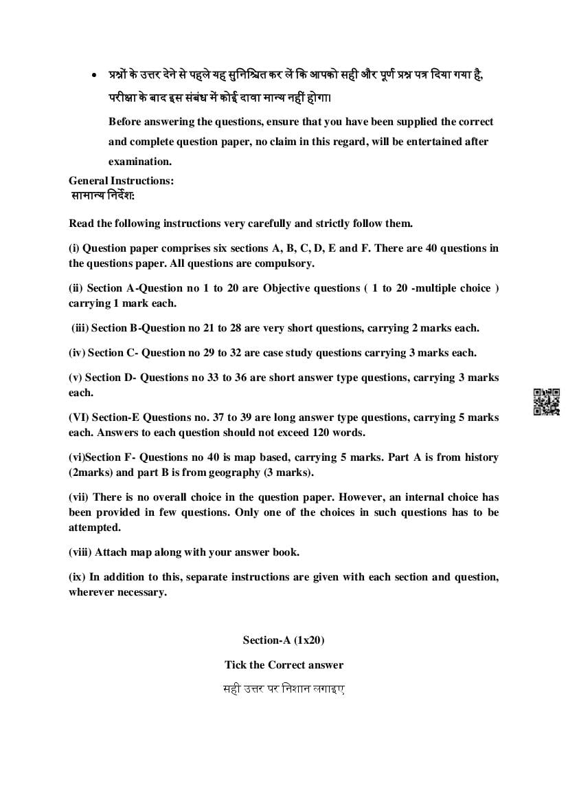 हरियाणा बोर्ड 10वीं सामाजिक विज्ञान मॉडल पेपर 2025