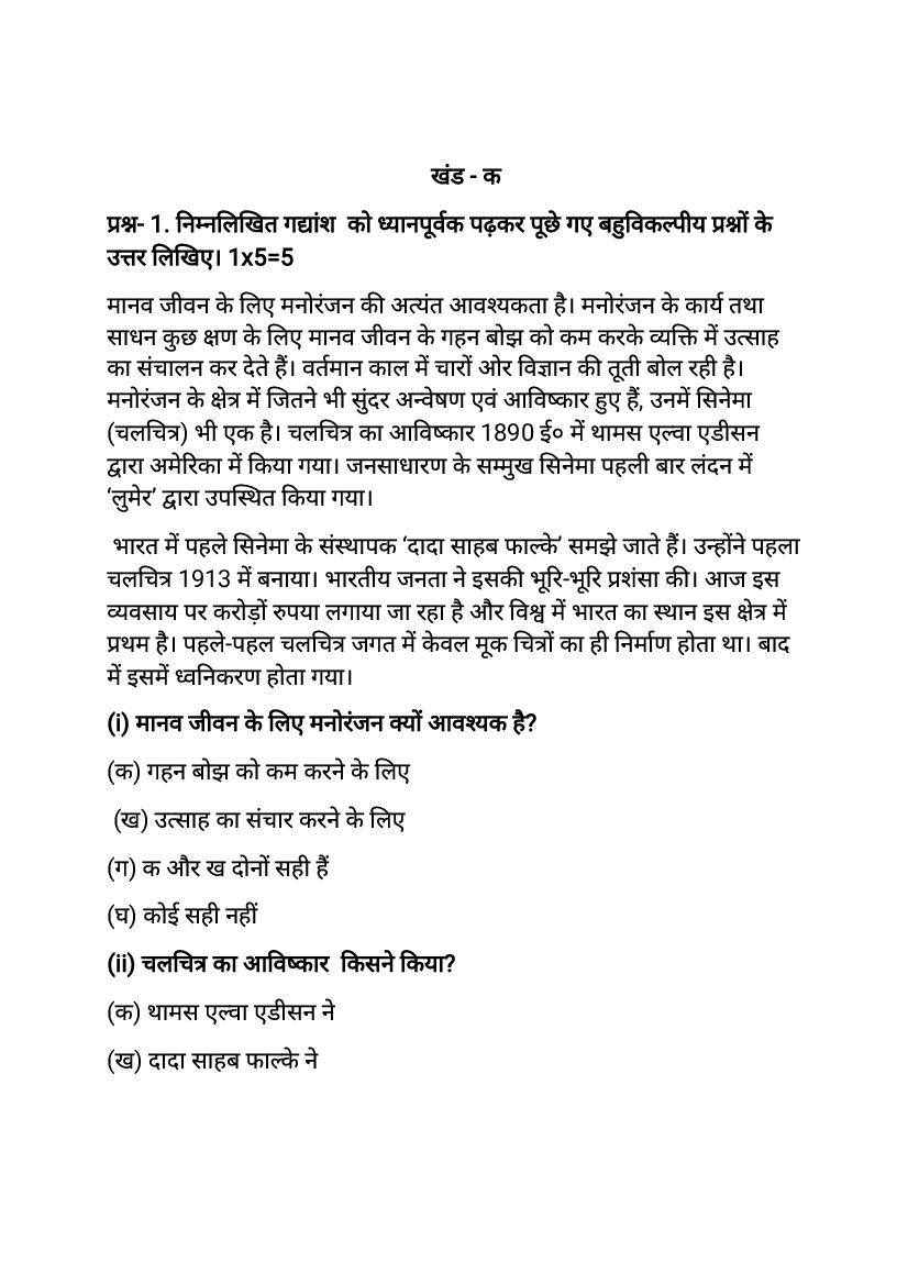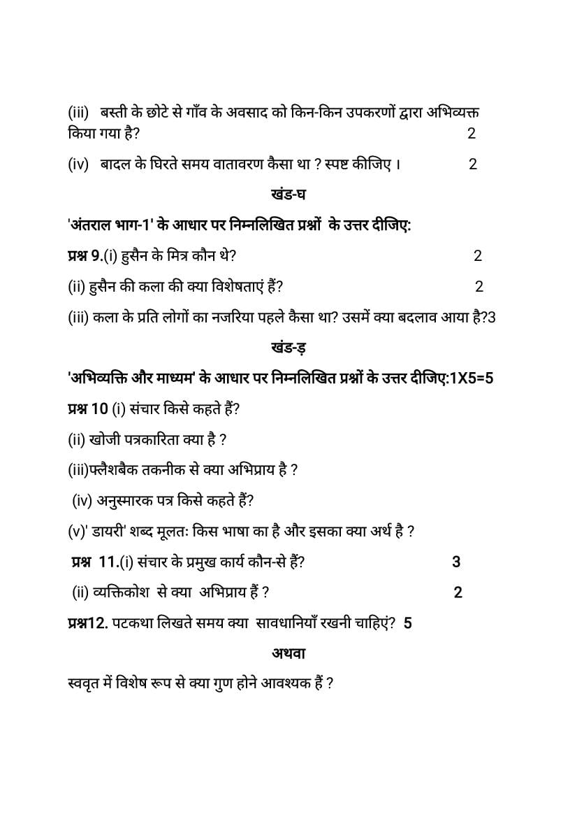 - हरियाणा बोर्ड कक्षा 12वीं मॉडल पेपर