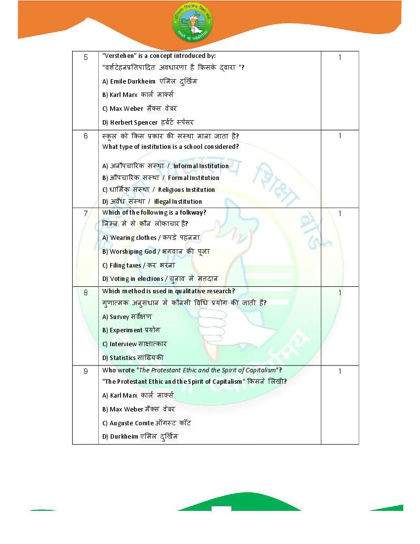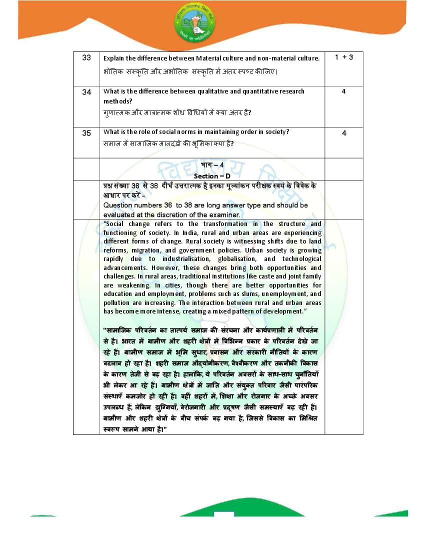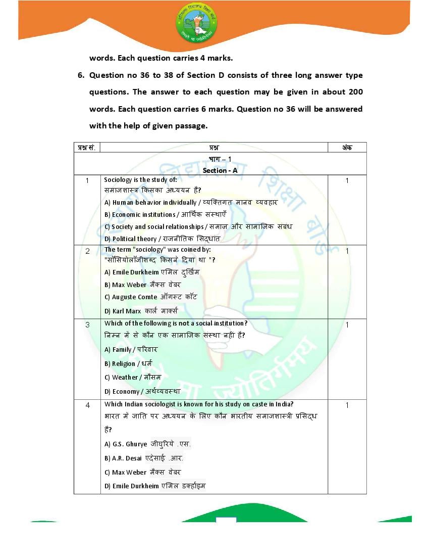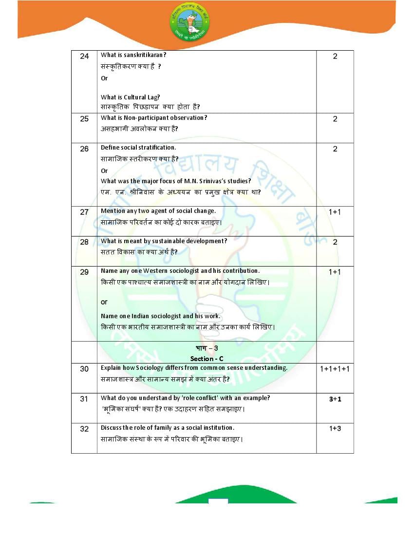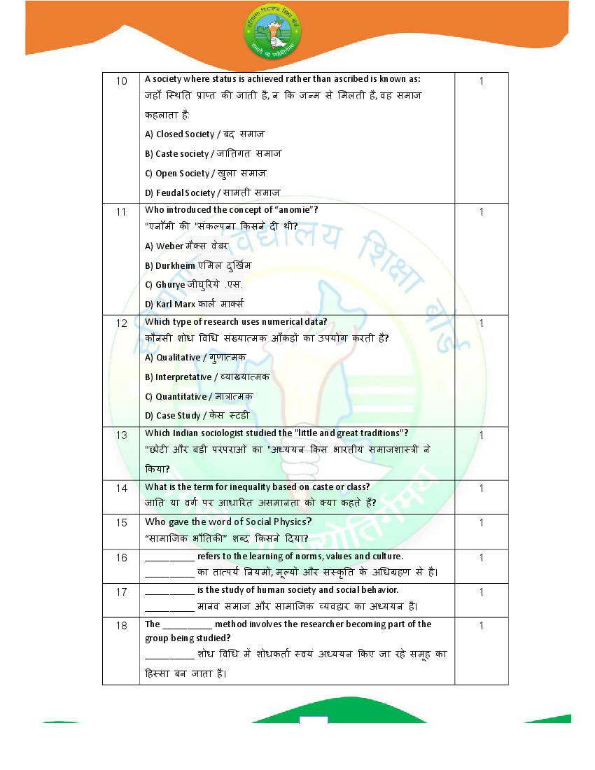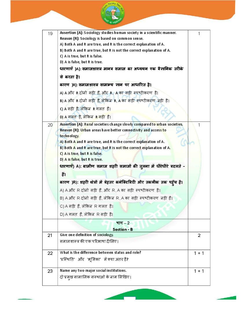 HBSE Class 11 Sample Paper 2026 Sociology View Download