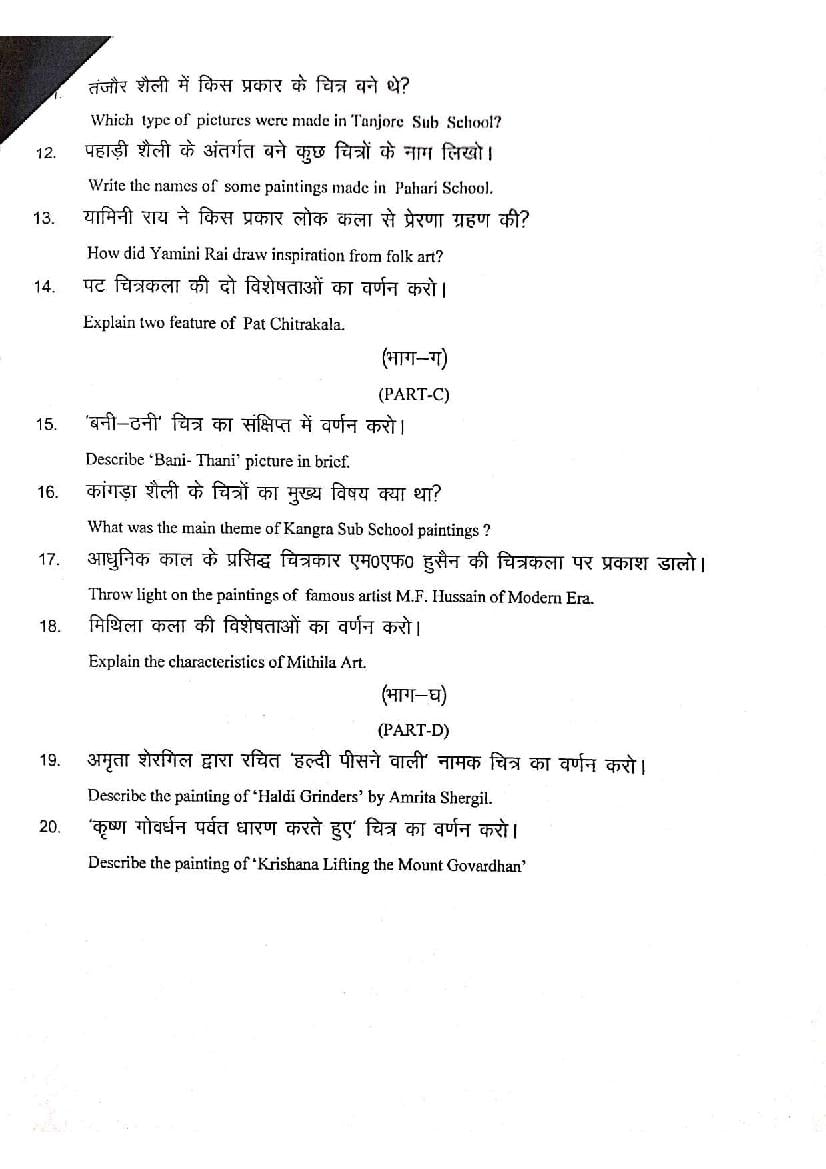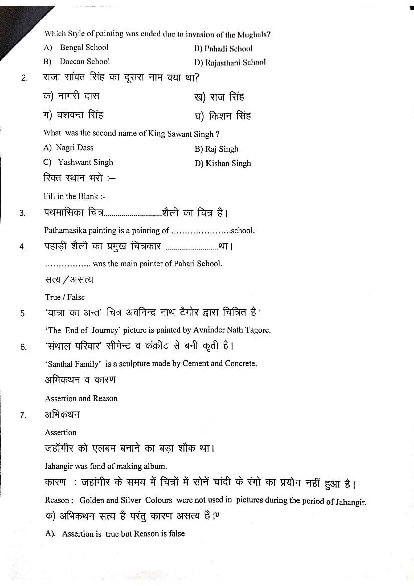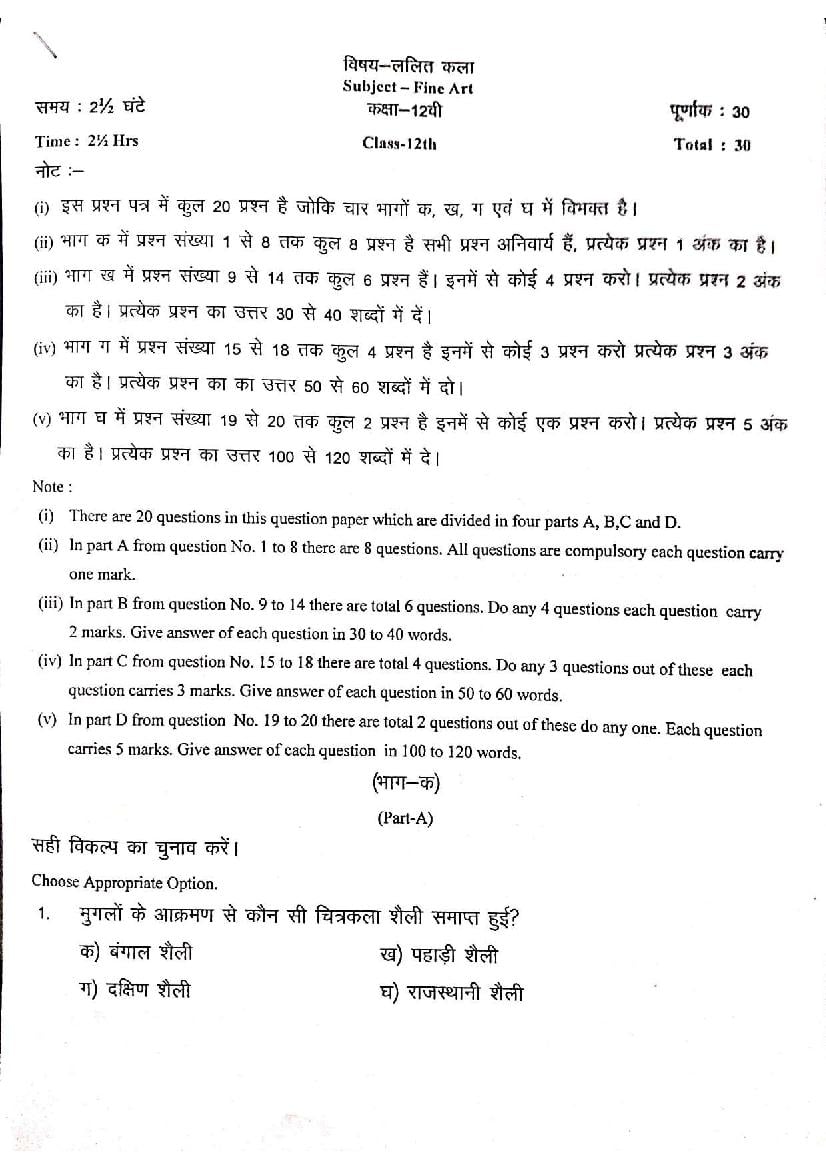 हरियाणा बोर्ड 12वीं ललित कला मॉडल पेपर 2026