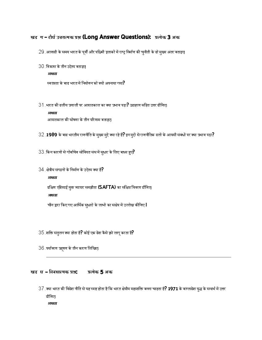 हरियाणा बोर्ड 12वीं राजनीतिक विज्ञान मॉडल पेपर 2026