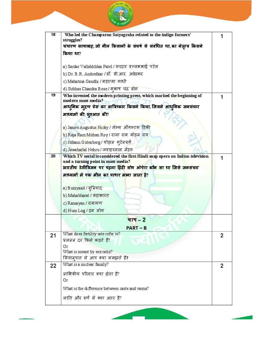 हरियाणा बोर्ड 12वीं समाज शास्त्र मॉडल पेपर 2026 PDF