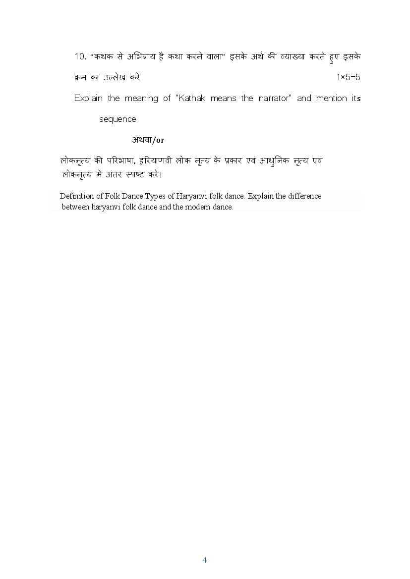 हरियाणा बोर्ड 9वीं नृत्य मॉडल पेपर 2026