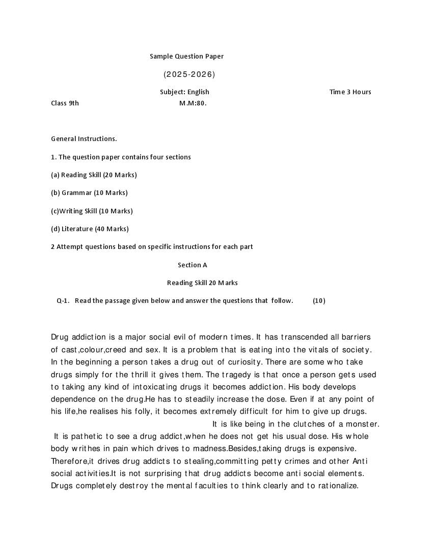 HBSE Class 9 Sample Paper 2026 English View Download