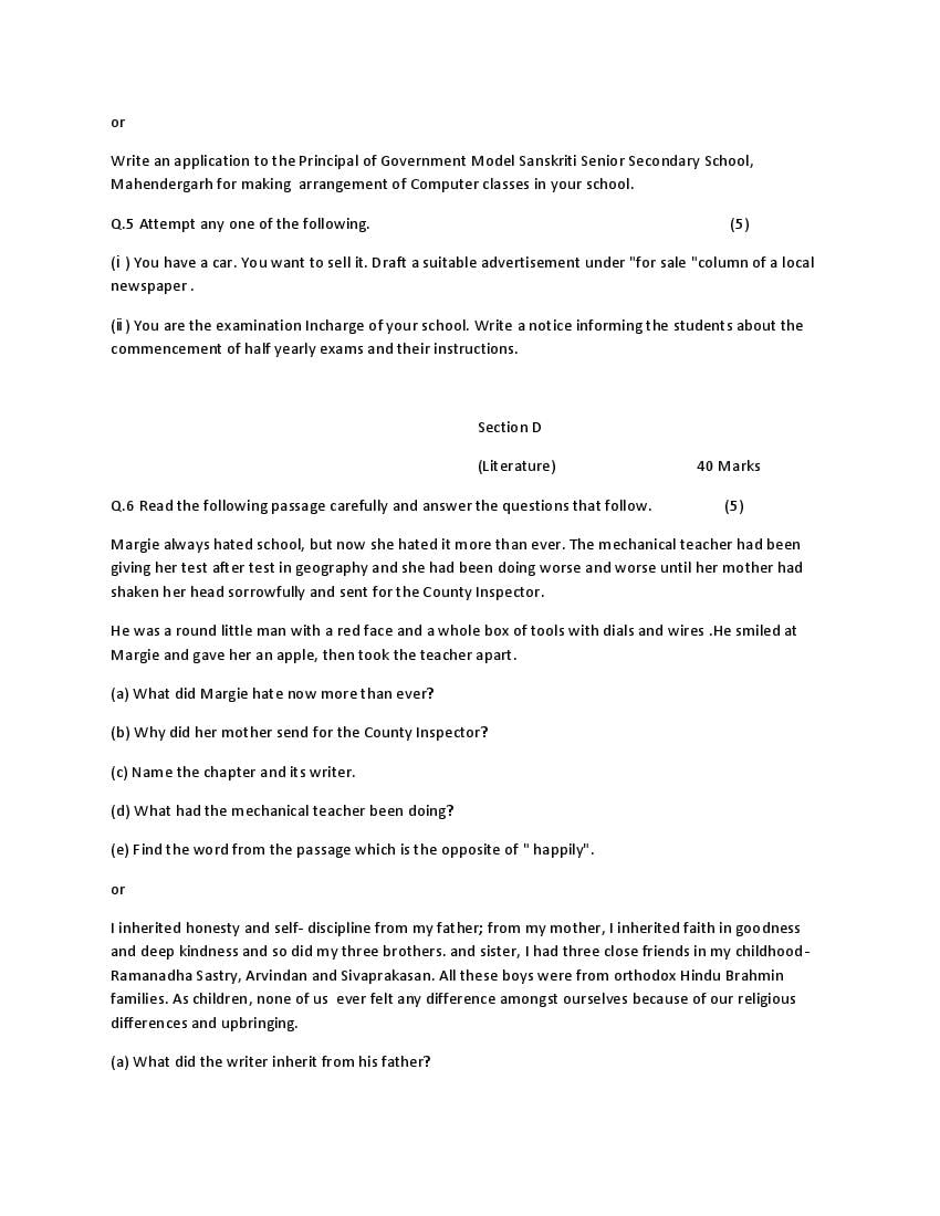 हरियाणा बोर्ड मॉडल पेपर