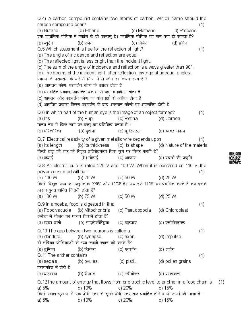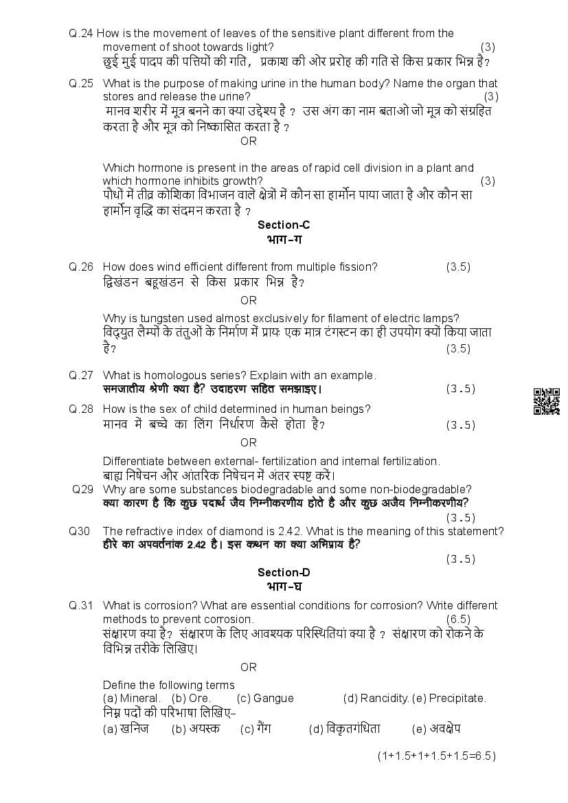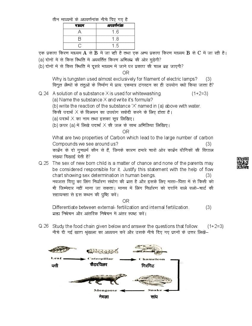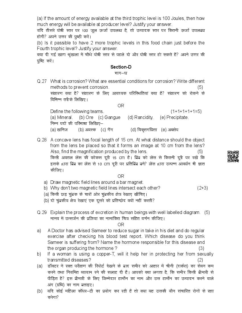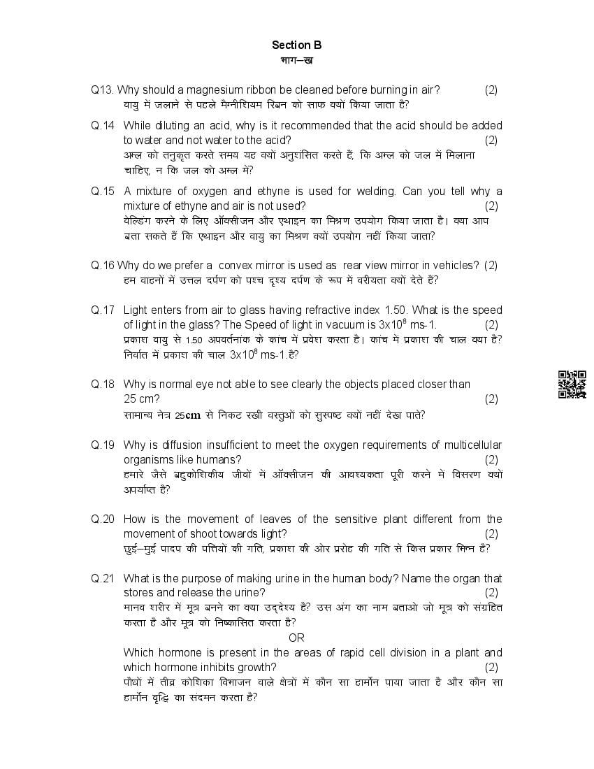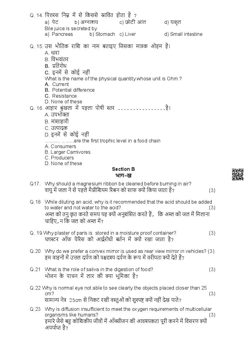 हिमाचल बोर्ड 10वीं विज्ञान मॉडल पेपर 2026