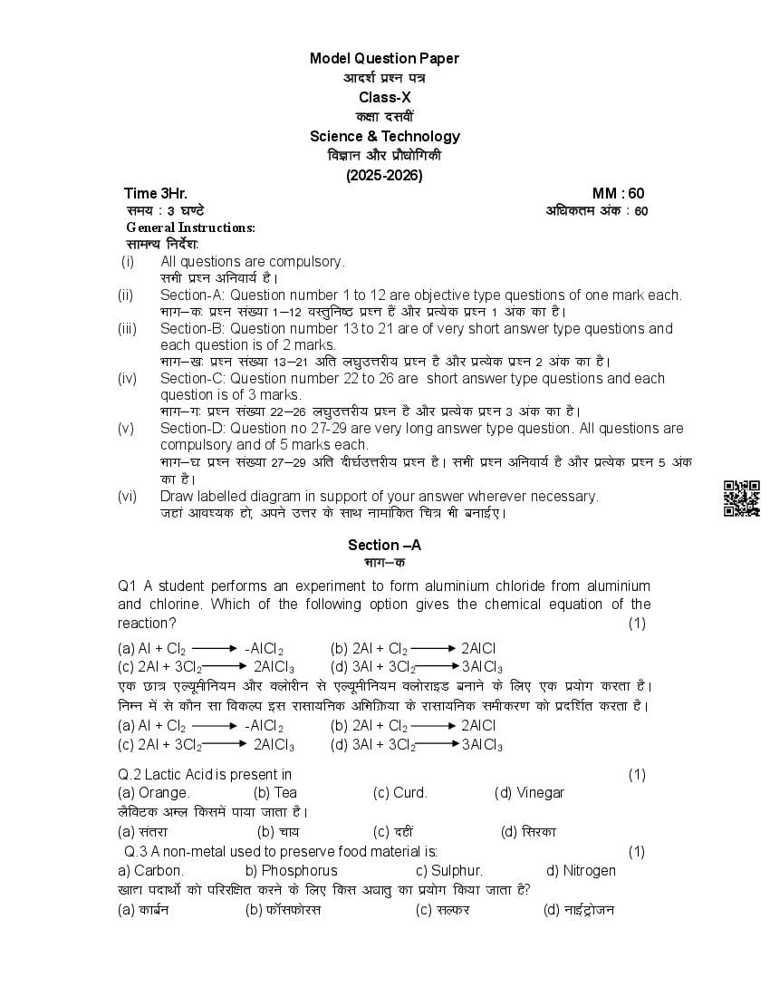 HP Board 10th Class Model Question Paper 2026 Science and Technology View Download