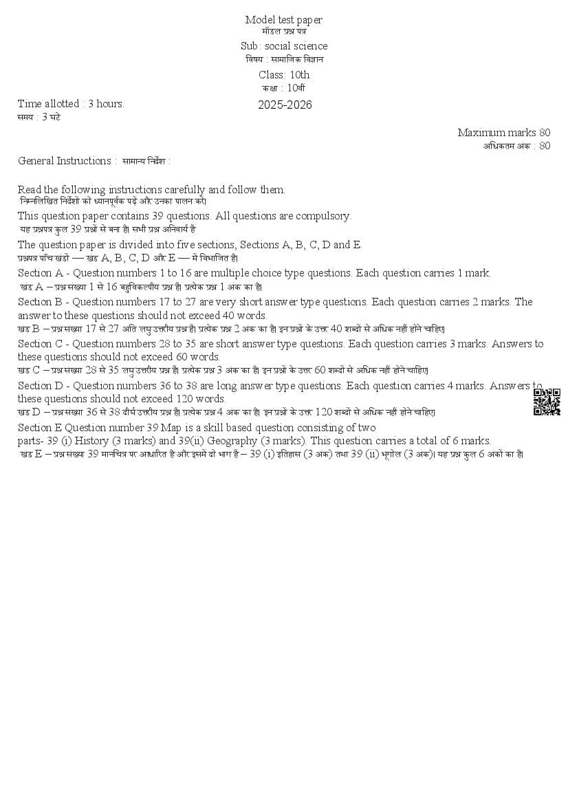 हिमाचल बोर्ड 10वीं सामाजिक विज्ञान मॉडल पेपर 2026 – जरूरी बातें