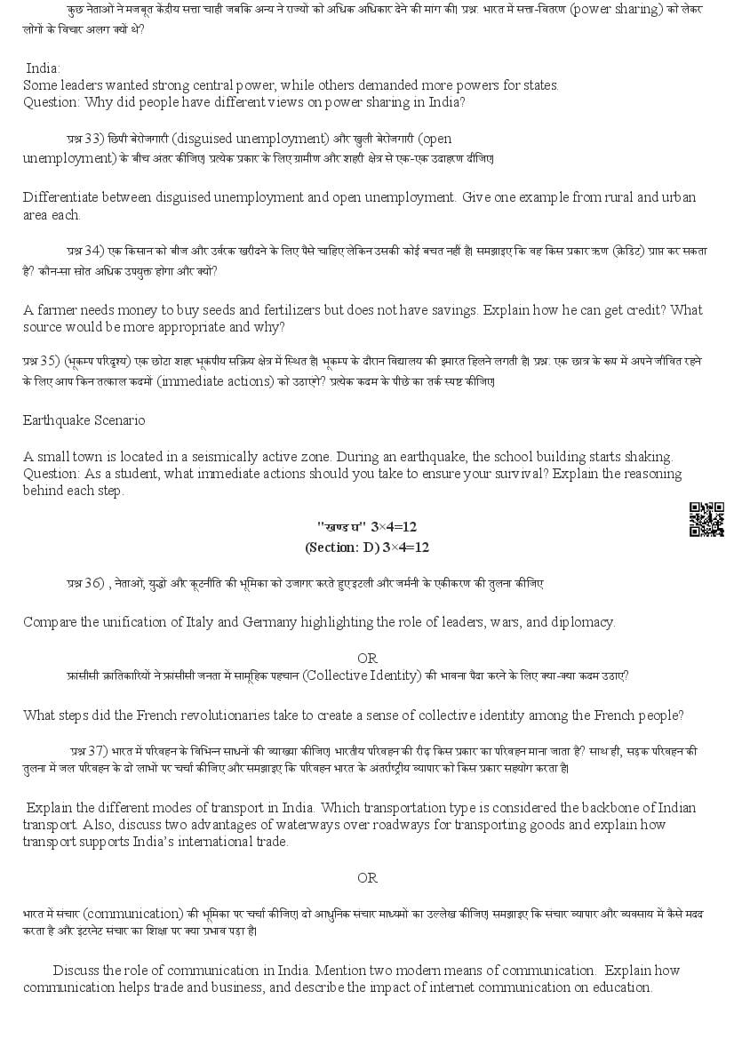 हिमाचल बोर्ड 10वीं सामाजिक विज्ञान मॉडल पेपर 2026