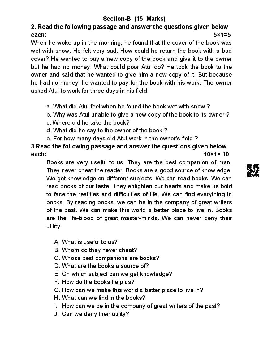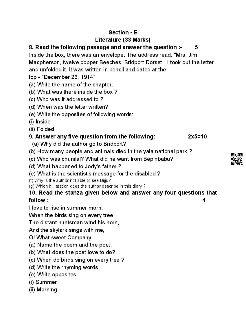 हिमाचल बोर्ड 8वीं अंग्रेज़ी मॉडल पेपर 2025