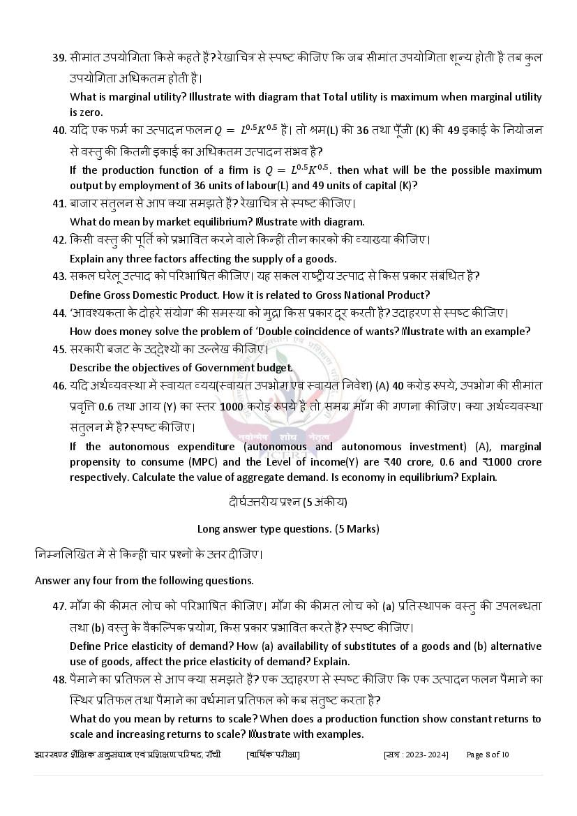 JAC Class 12 Model Question Paper 2024 Economics View Download