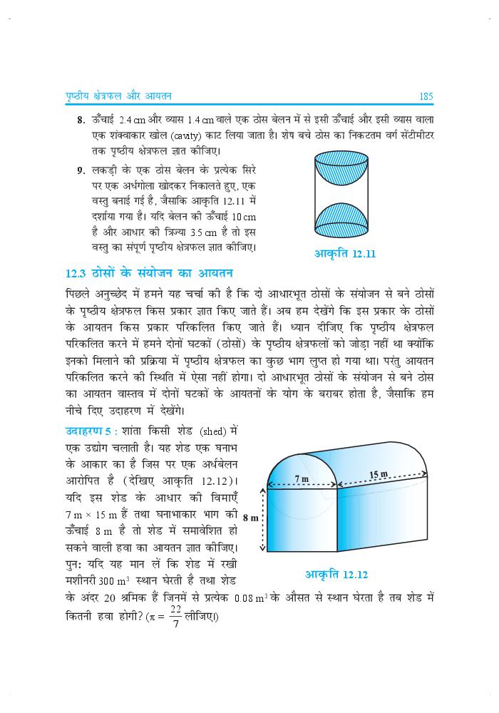 यह रहा कक्षा 10 गणित के लिए नई एनसीईआरटी पाठ्यपुस्तक से अध्याय 12 पृष्ठीय क्षेत्रफल और आयतन।