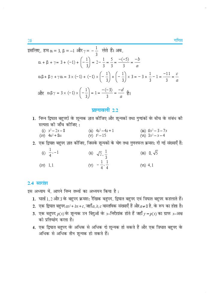 एनसीईआरटी पुस्तक हिंदी में कक्षा 10 गणित अध्याय 2 बहुपद – मुख्य विवरण