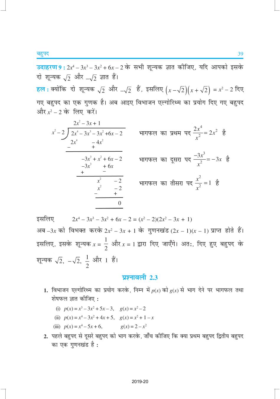 यह रहा कक्षा 10 गणित के लिए नई एनसीईआरटी पाठ्यपुस्तक से अध्याय 2 बहुपद।
