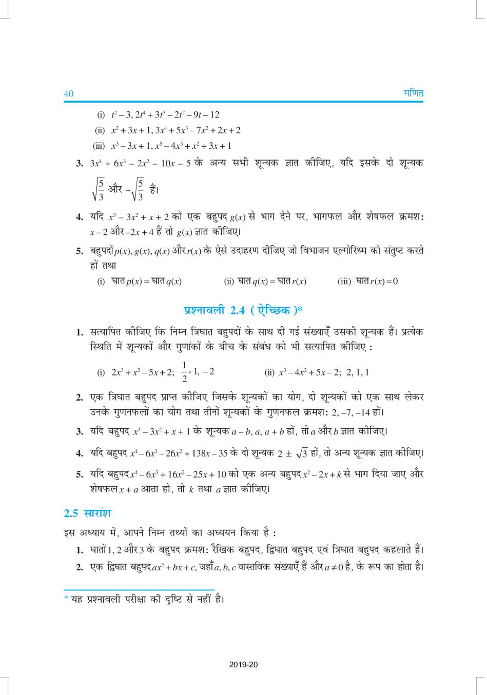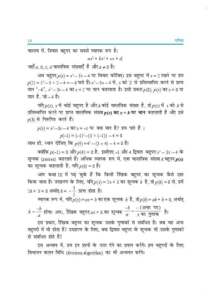 NCERT Book Class 10 Maths (गणित) Chapter 2 बहुपद View Download