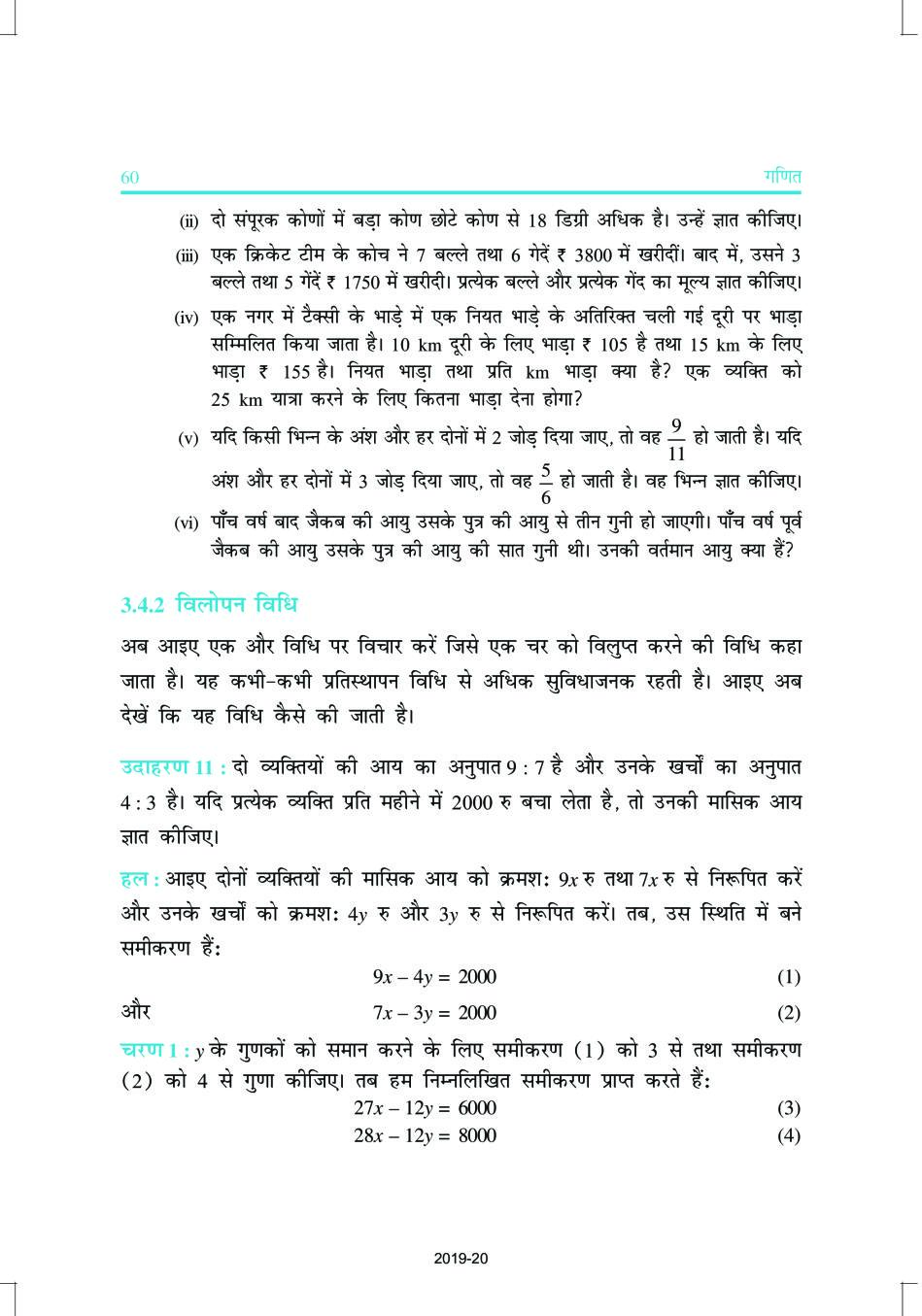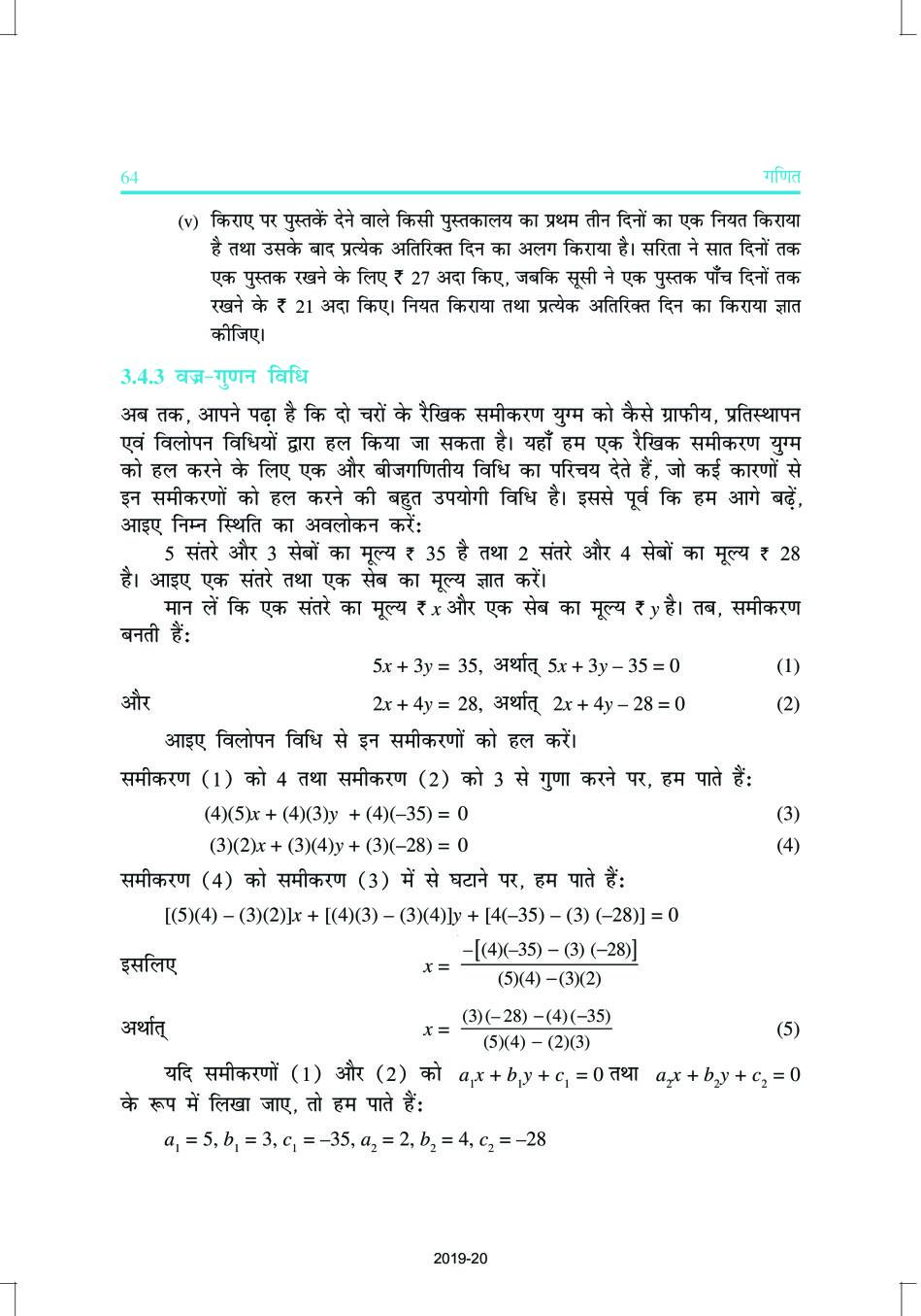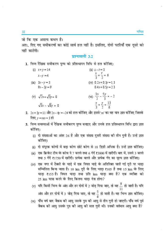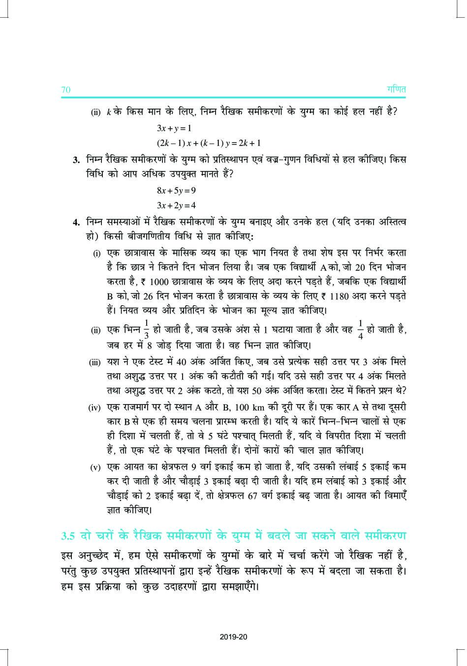 NCERT Book Class 10 Maths (गणित) Chapter 3 दो चर वाले रैखिक समीकरण युग्म View Download