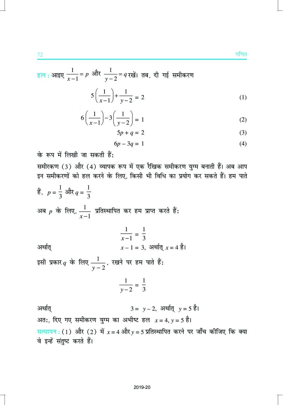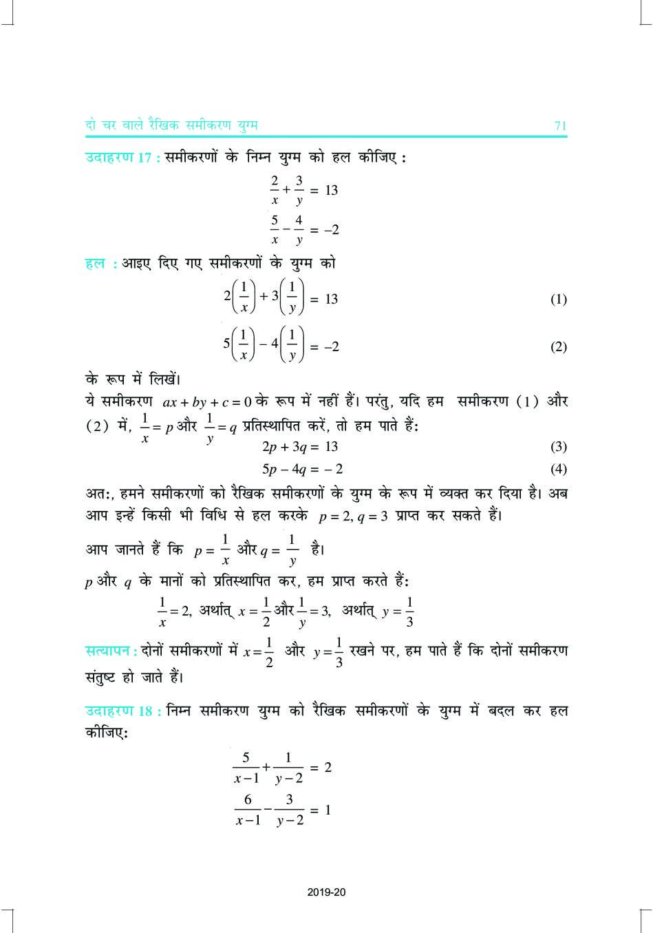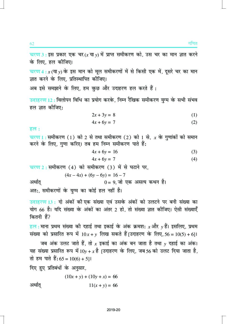 NCERT Book Class 10 Maths (गणित) Chapter 3 दो चर वाले रैखिक समीकरण युग्म View Download