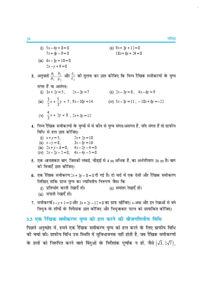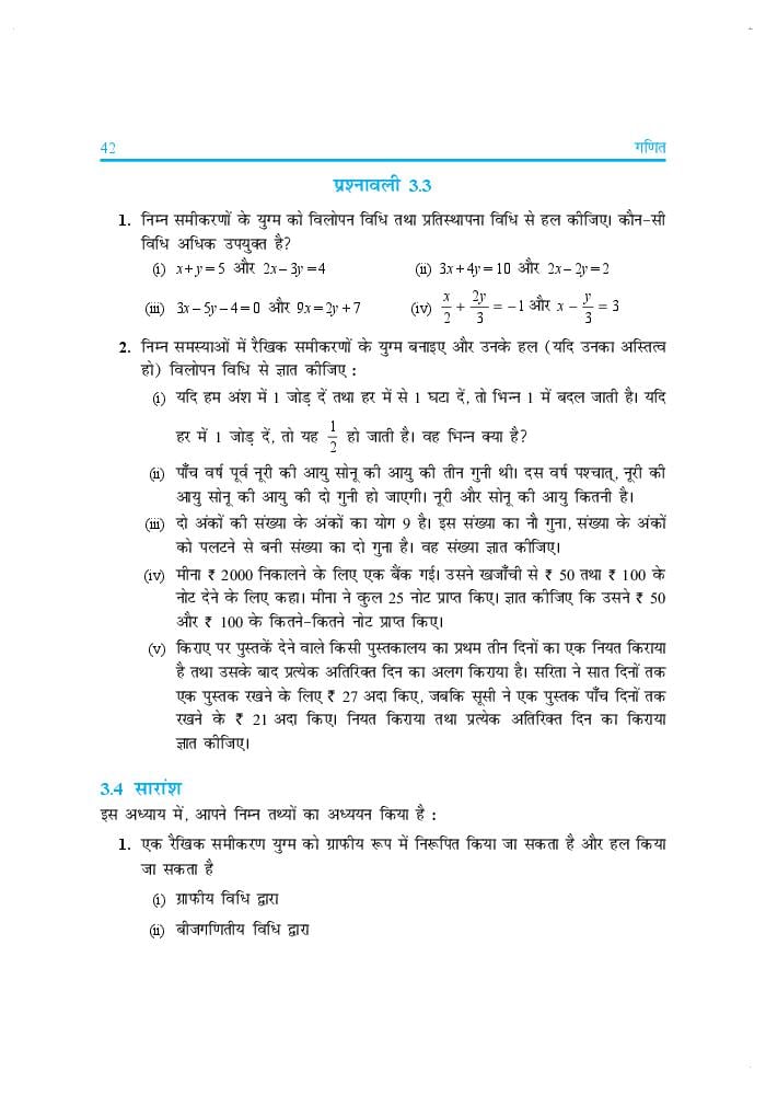 - Chapter 3: दो चर वाले रैखिक समीकरण युग्म