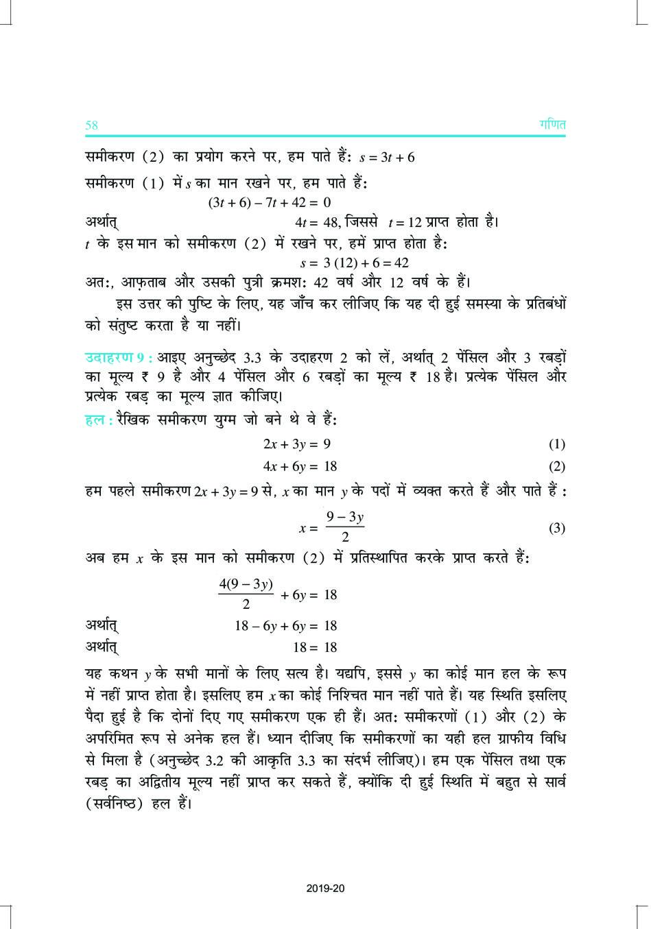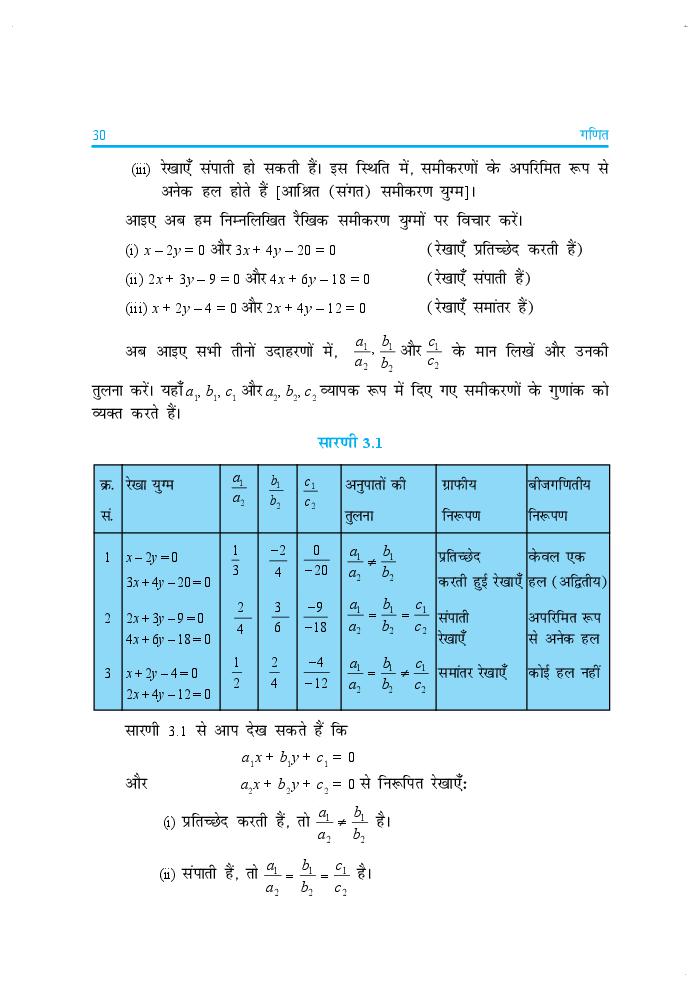 एनसीईआरटी पुस्तक हिंदी में कक्षा 10 गणित अध्याय 3 दो चर वाले रैखिक समीकरण युग्म PDF