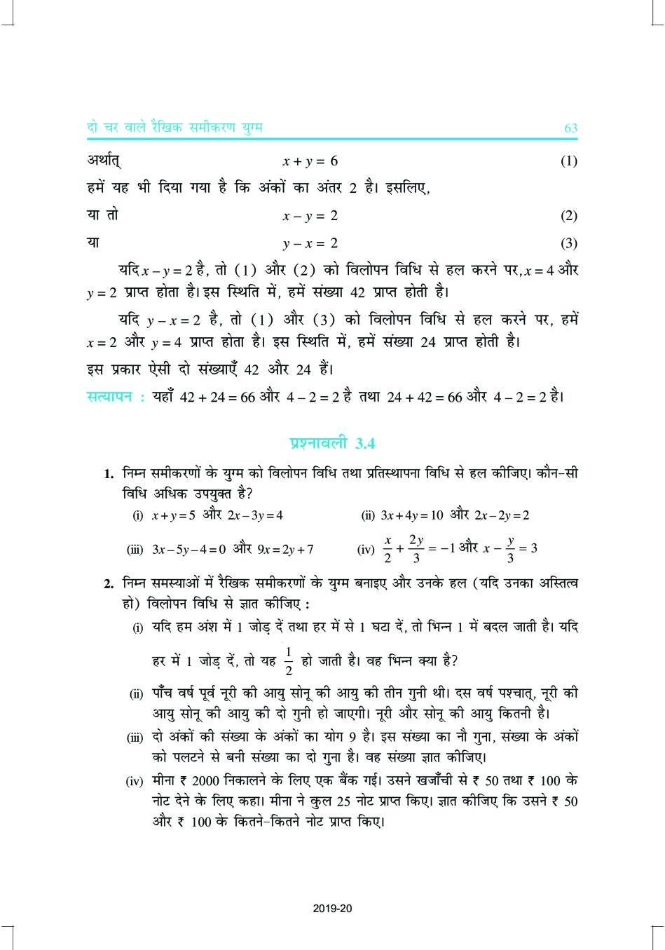 यह रहा कक्षा 10 गणित के लिए नई एनसीईआरटी पाठ्यपुस्तक से अध्याय 3 दो चर वाले रैखिक समीकरण युग्म।