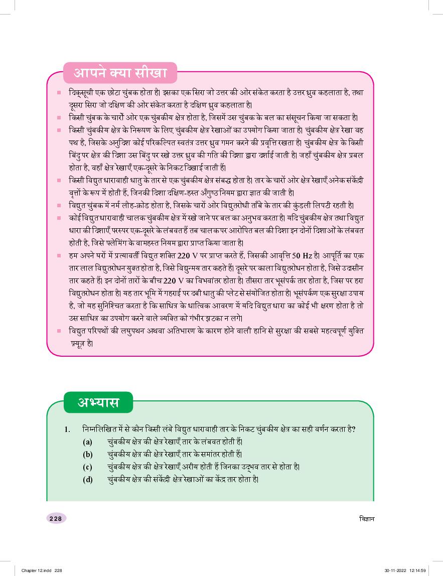 NCERT Book Class 10 Science (विज्ञान) Chapter 12 विद्युत धारा के चुंबकीय प्रभाव View Download