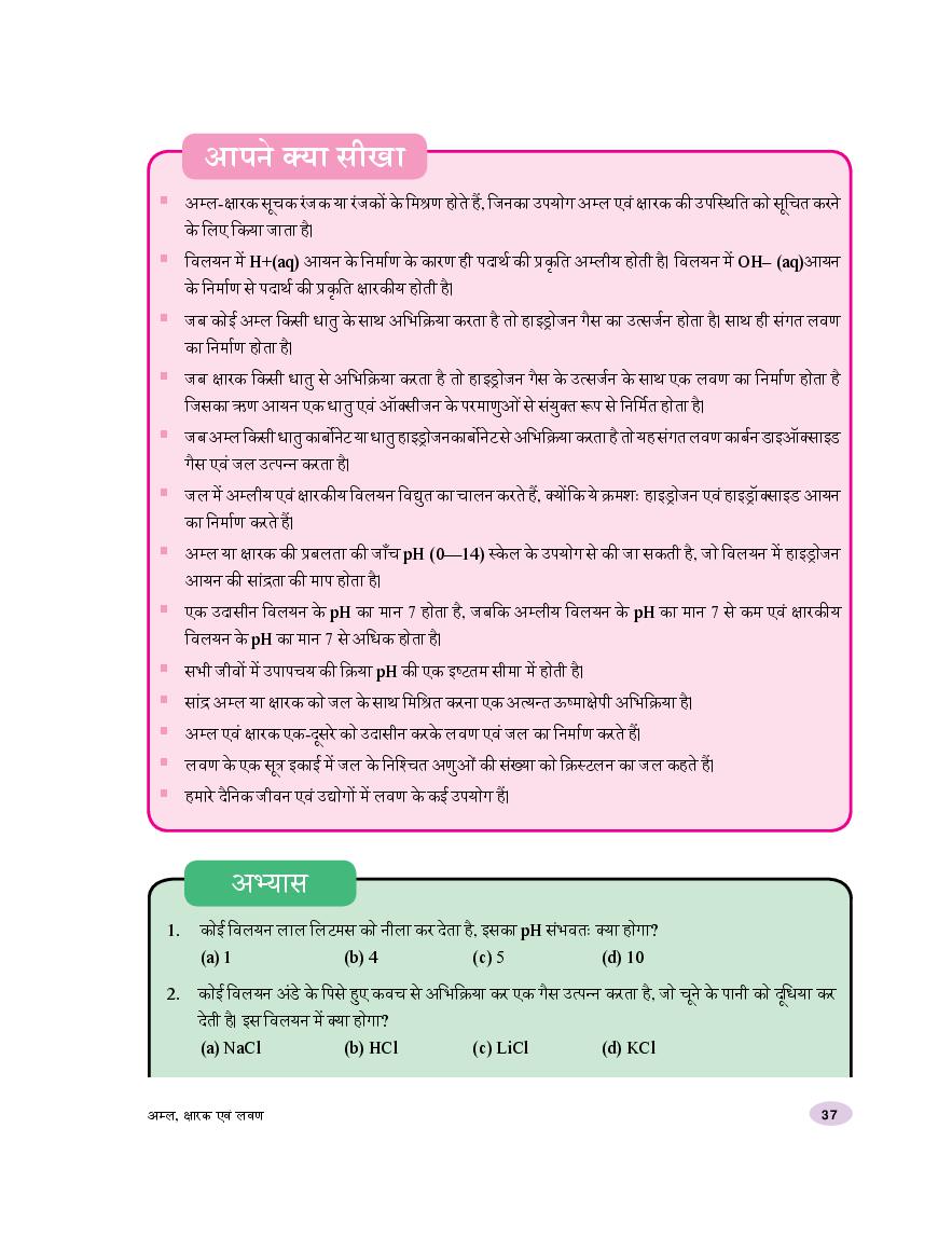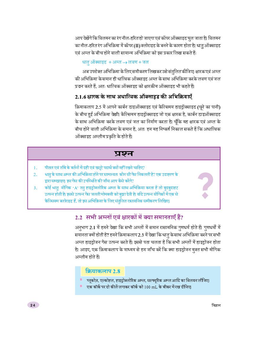 NCERT Book Class 10 Science (विज्ञान) Chapter 2 अम्ल, क्षारक एवं लवण View Download