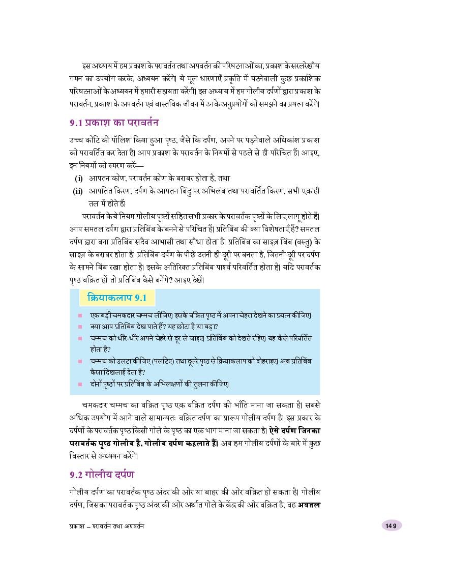 NCERT Book Class 10 Science (विज्ञान) Chapter 9 प्रकाश – परावर्तन तथा अपवर्तन View Download