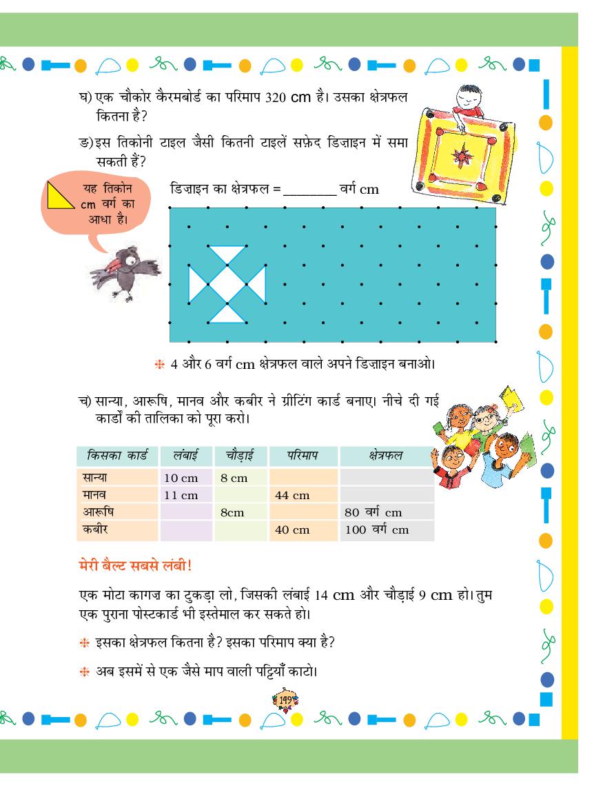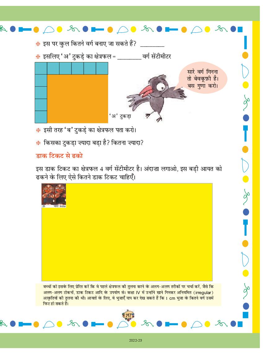 यह रहा कक्षा 5 गणित के लिए नई एनसीईआरटी पाठ्यपुस्तक से अध्याय 11 क्षेत्रफल और घेरा।