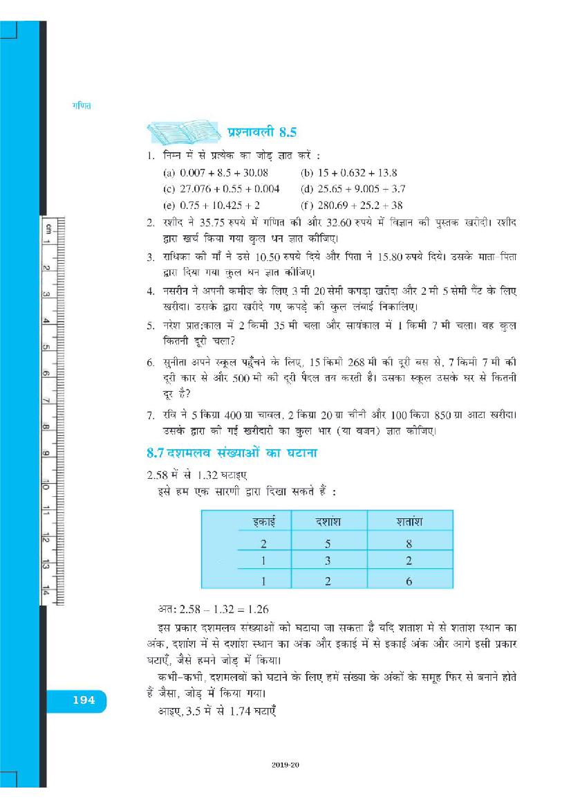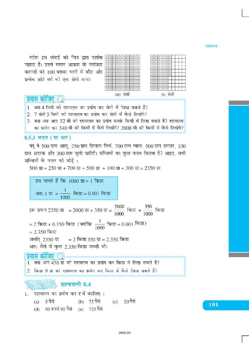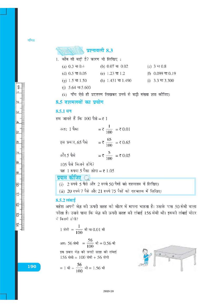 NCERT Book Class 6 Maths (गणित) Chapter 8 दशमलव View Download