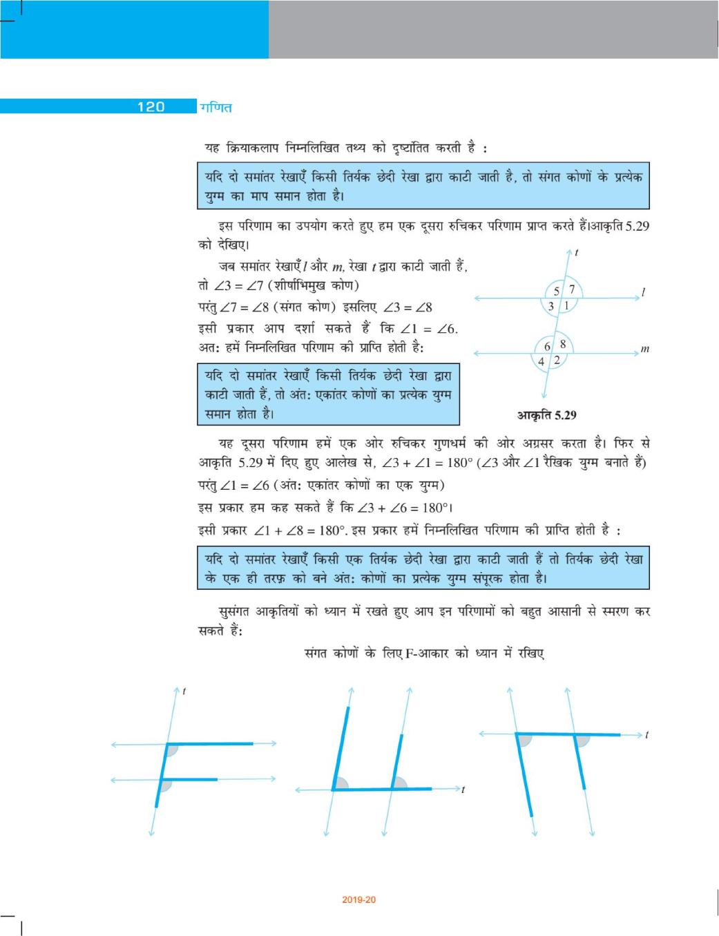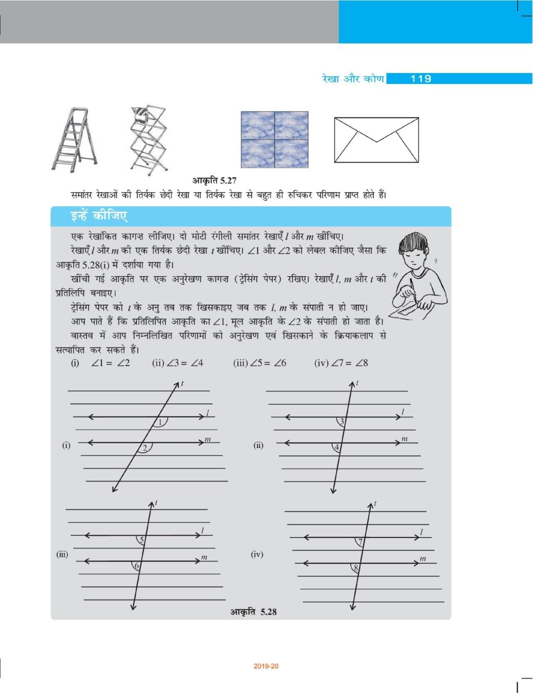 एनसीईआरटी पुस्तक कक्षा 7 गणित अध्याय 5 रेखा एवं कोण मुफ्त में पढ़ने और PDF के रूप में डाउनलोड करने के लिए यहां उपलब्ध है। यह एनसीईआरटी पुस्तक कक्षा 7 गणित हिंदी में, इसके नए संस्करण 2024-25 का, पूरा अध्याय 5 है। रेखा एवं कोणओं को 7वीं स्तर पे जिस पुस्तक से पढ़ाया जाता है, उसका नाम है गणित। इस अध्याय को पढ़कर आप गणित विषय में 7वीं कक्षा के स्तर पर पढ़ाई जाने वाली रेखा एवं कोणओं के बारे में सब कुछ जान सकते हैं। साथ ही यदि आप कक्षा 7 के लिए एनसीईआरटी समाधान की जांच करते हैं तो आप गणित के पुस्तक के इस पाठ (अध्याय 5 – रेखा एवं कोणओं) के प्रश्नों के हल भी कर सकते हैं।