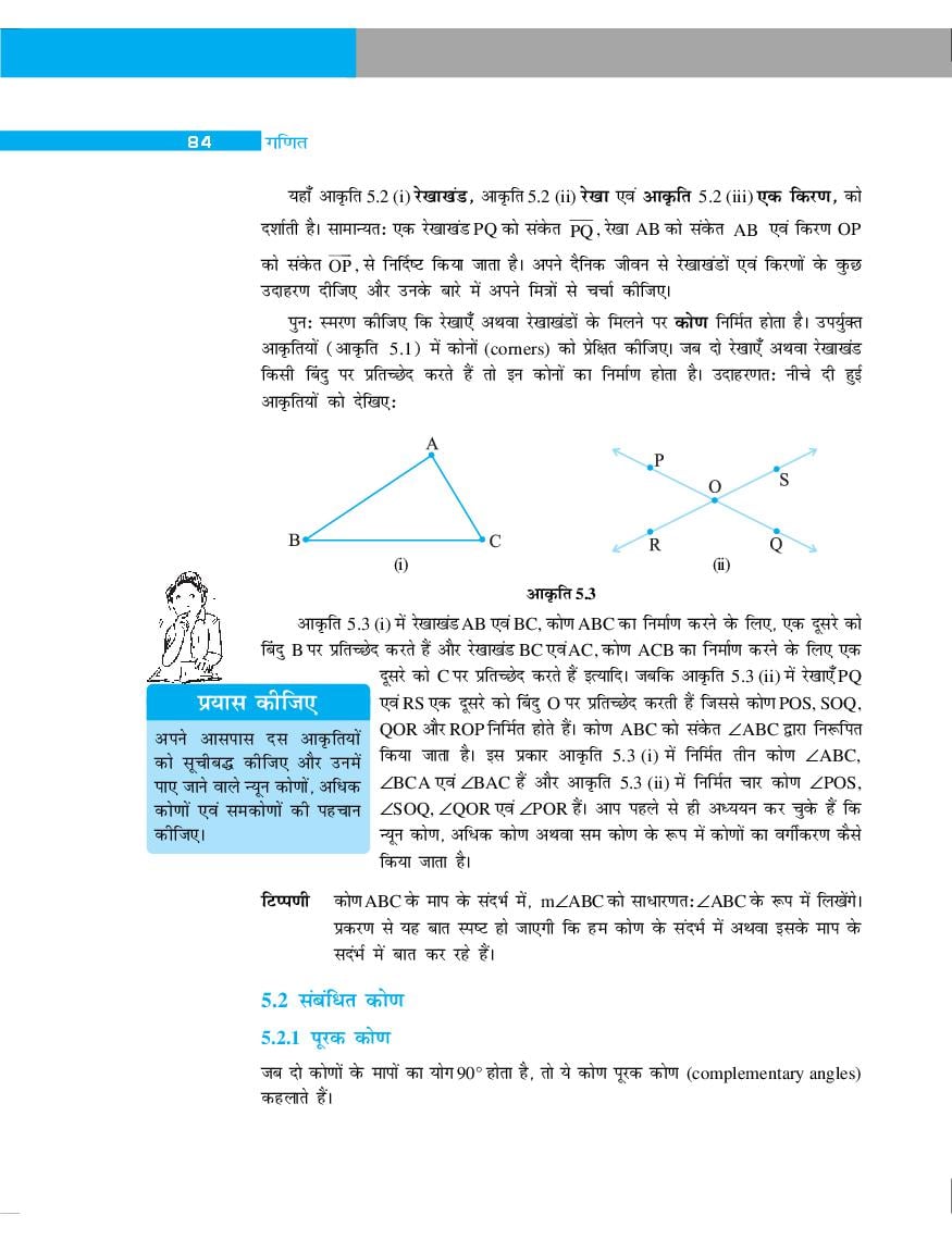 NCERT Book Class 7 Maths (गणित) Chapter 5 रेखा एवं कोण View Download