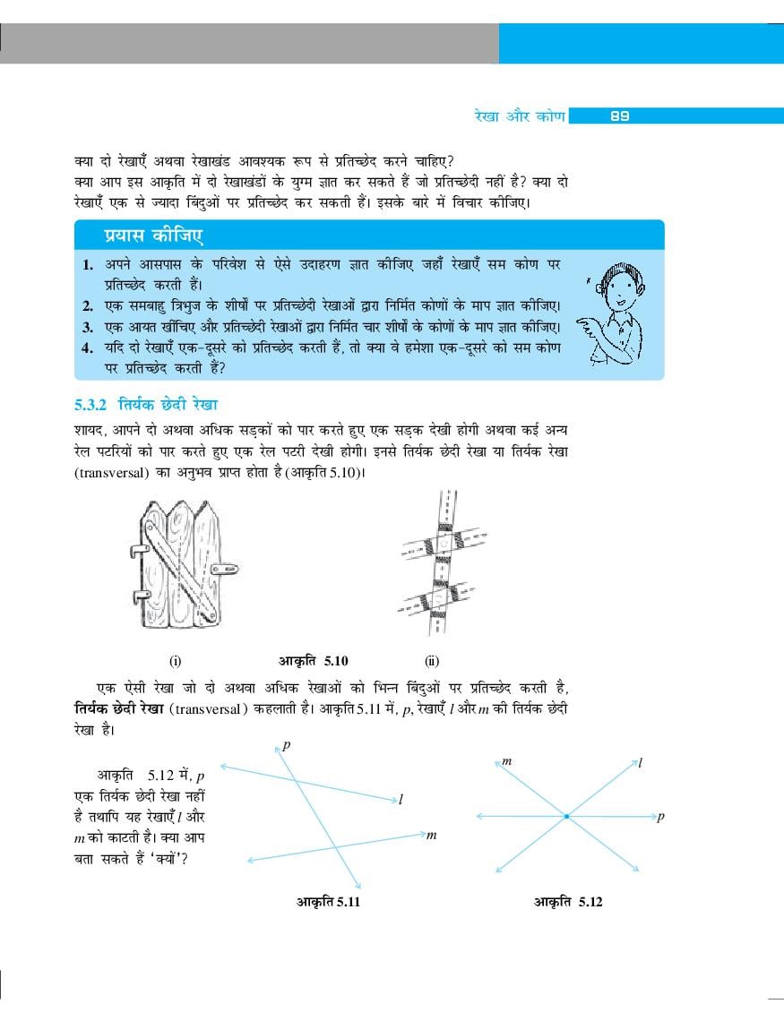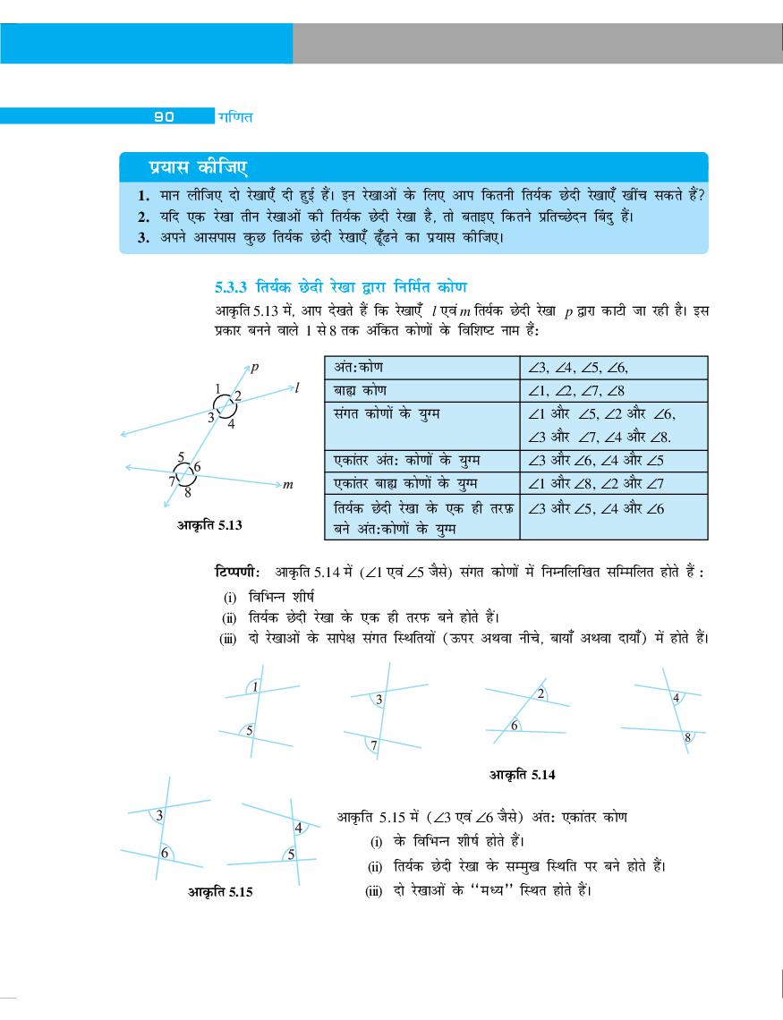 एनसीईआरटी पुस्तक हिंदी में कक्षा 7 गणित अध्याय 5 रेखा एवं कोण PDF